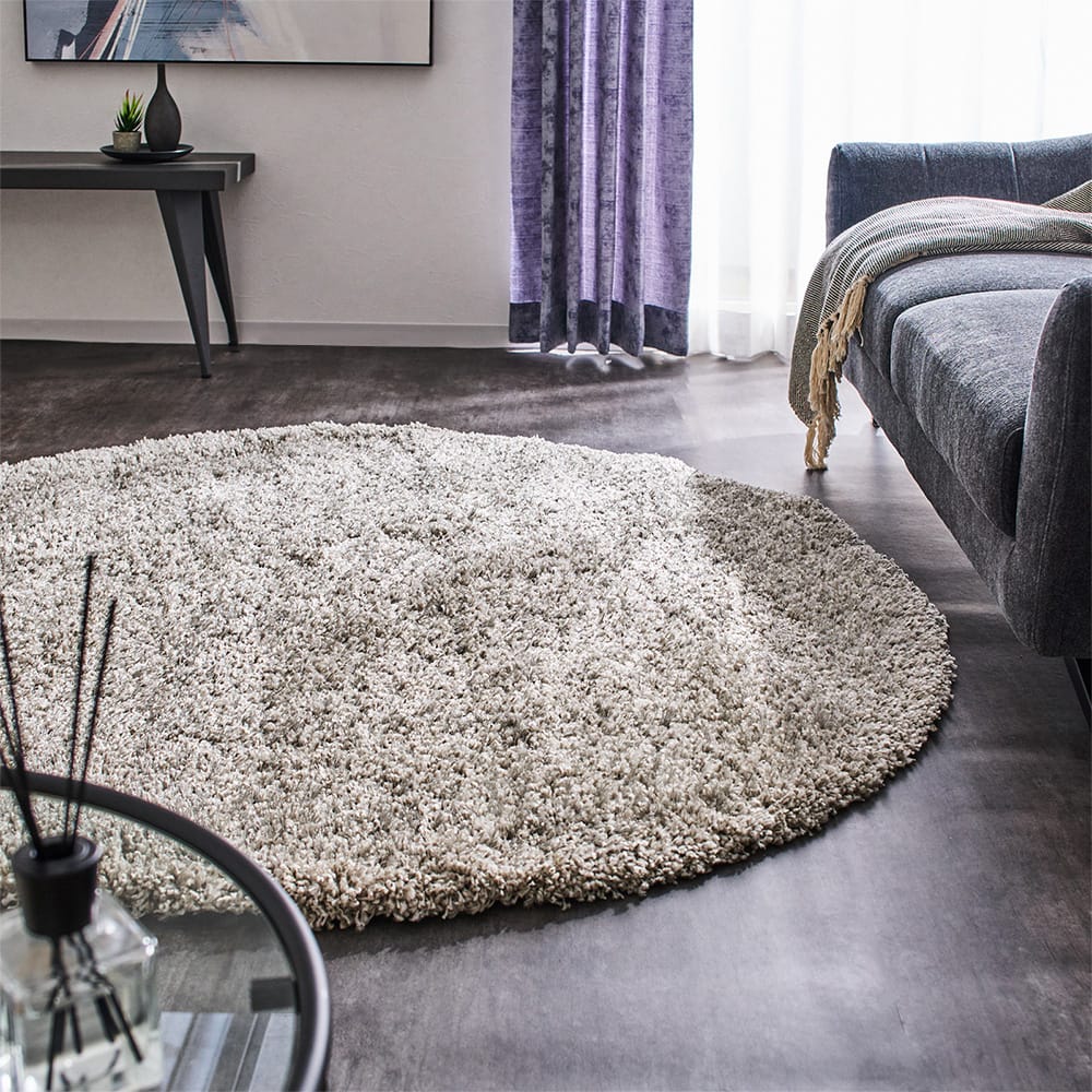 抗菌・消臭・防炎など、バツグンの機能性が魅力のシャギーラグ。2種類の糸と織り合わせており、毛足の高低差で生まれるランダムな表情が独特な存在感があり、モダンテイストのお部屋にもピッタリ。ふわっとボリューム感のある手触りが心地よい一枚です。
