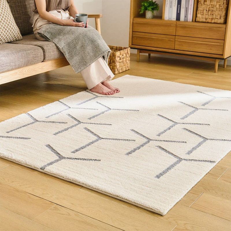 ナチュラルな色使いと幾何学模様が北欧らしいおしゃれな仕上がりに。ぬくもりある雰囲気は北欧テイストのインテリアにもピッタリ。しっかりとした機能も、おしゃれなデザインも両方叶うラグでステキな空間をつくりませんか?
