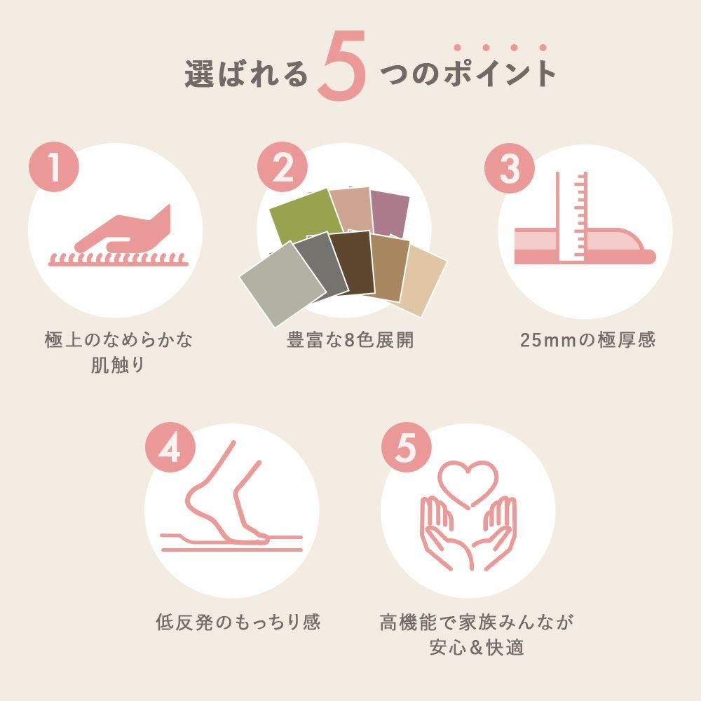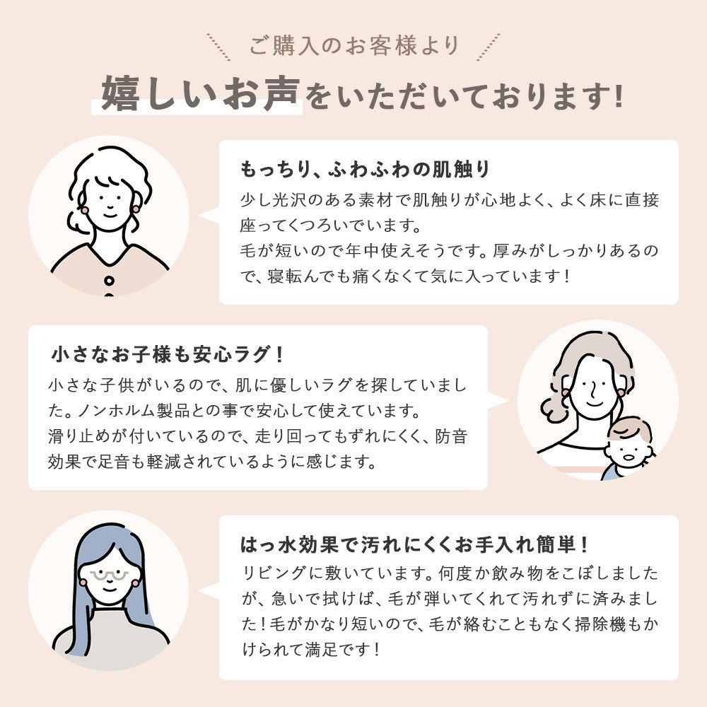 ラグを敷くことで、お部屋のイメージを変えたり、防寒、床を保護し傷つけない、騒音対策などに使えます。敷くことでホコリなどがまいにくくなるので、ハウスダスト、猫、花粉症のアレルギー対策にもおすすめです。ハウスダストの舞い上がりはあるとなしでは10倍以上も違うという研究結果がでています。(参考文献・インテリアファブリックス性能評価協議会)