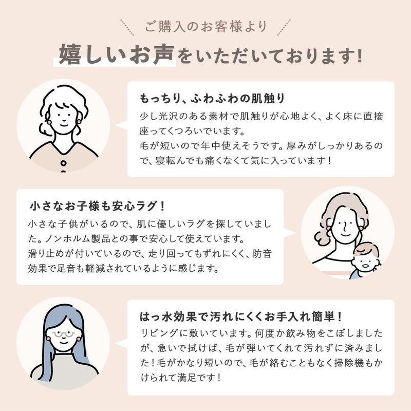 ※こぼしてからしばらく放置すると中に染み込みますのでご注意ください。また、色の付いた液体や食品などの付着は色移りの原因となります。ラグと過ごす心安らぐ我が家へ、ようこそ