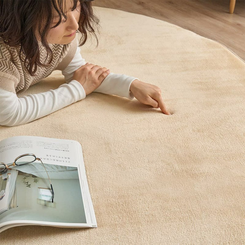 低反発ラグは、高反発ラグと比べて、ゆっくりと沈み込み、足を踏み込んだ時の衝撃を優しく吸収。吸いつくようなもっちり感が魅力です。日々の疲れを足元から癒し、リラックス空間をお届けします。