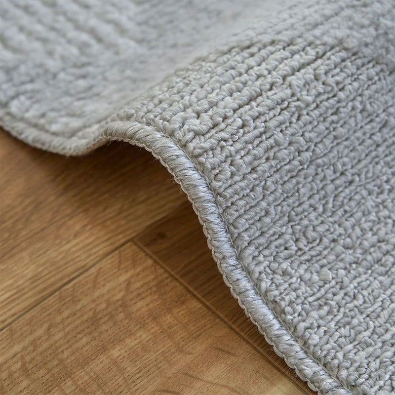 ポリエステル100%の糸を使用しほどよい光沢感と、ふんわりやさしい肌ざわりが魅力の一枚。素足で歩くたび、ほっとするような心地よさです。耐久性にも優れているので、美しさが長く続きます。