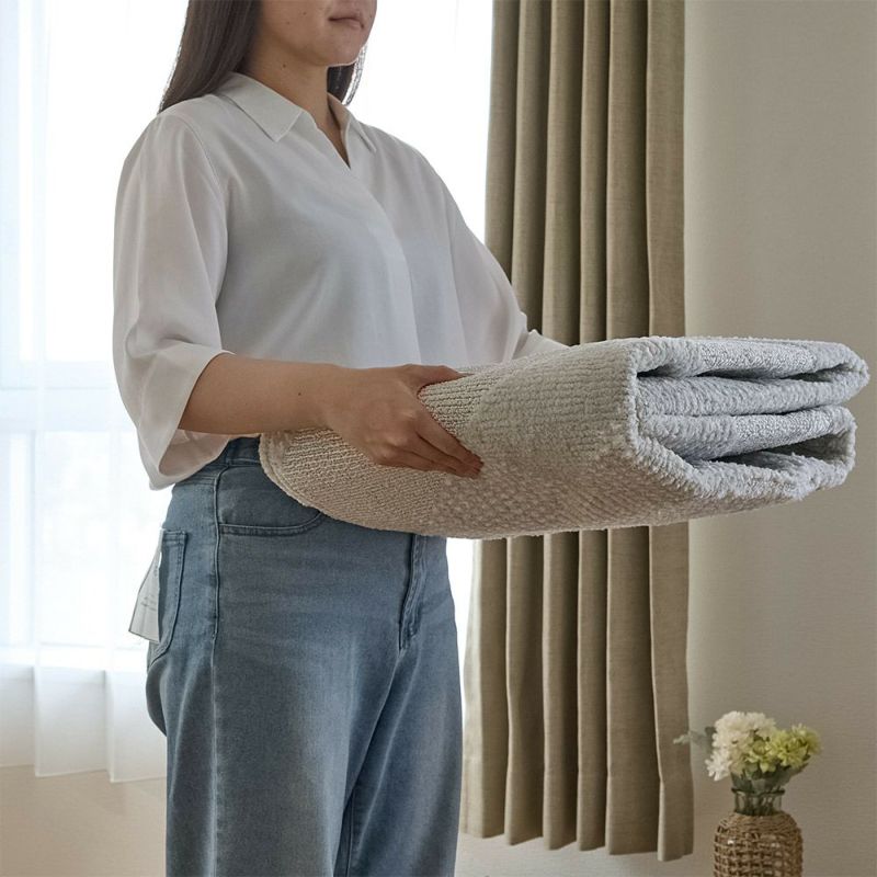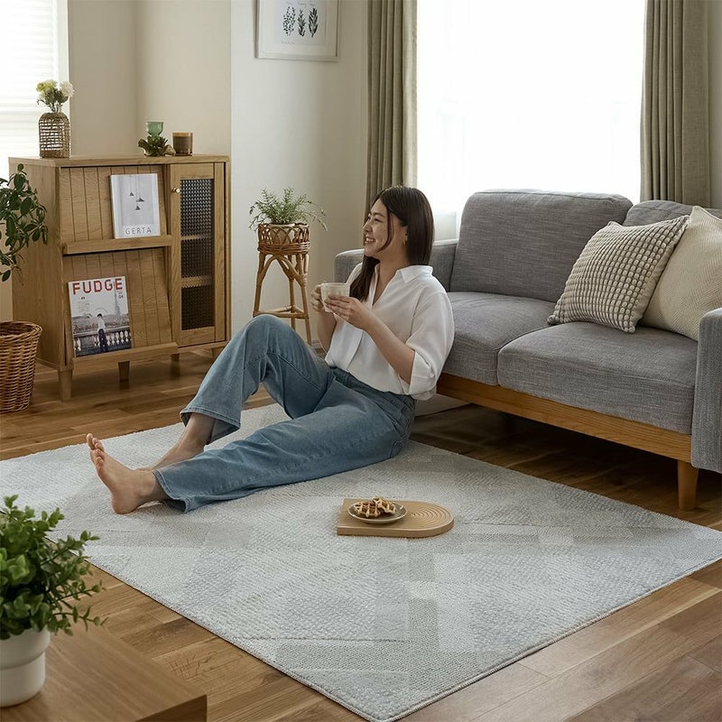 ロボット掃除機も使えるので、忙しい日々のお掃除もスムーズに。ちょっとしたストレスを減らして、毎日の暮らしをやさしく支えてくれる一枚です。軽くて持ち運びも簡単なラグ