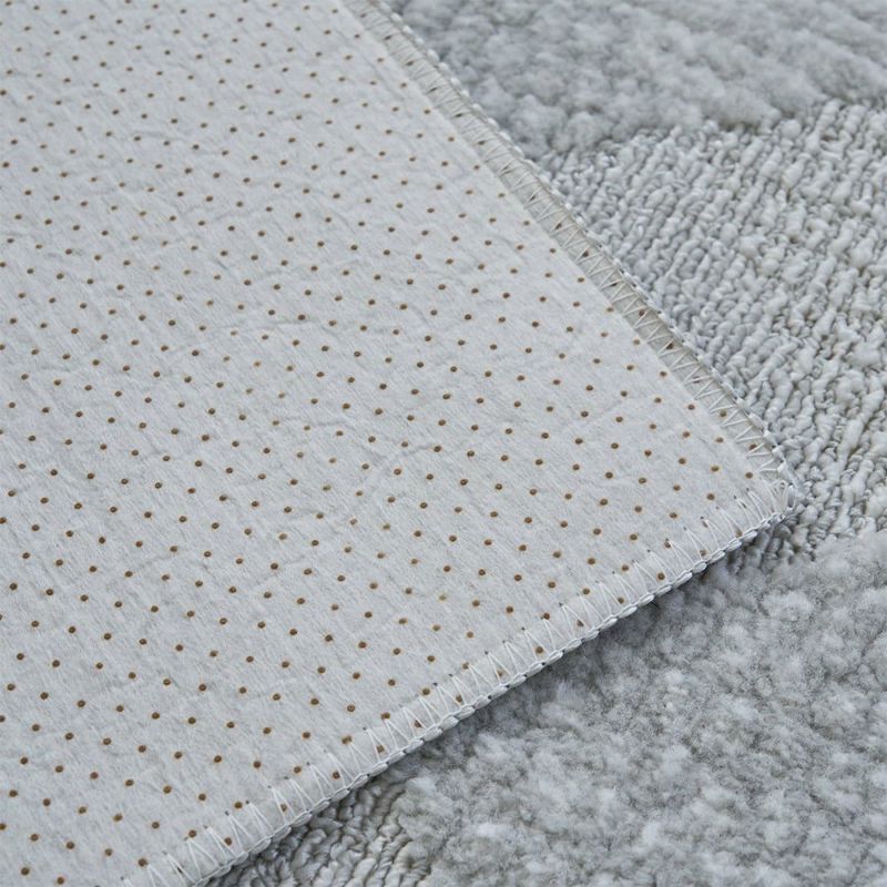 ラグの裏面には細かいドットの滑り止め加工が施されており、滑りやすいフローリングの上でもずれにくい安心仕様。家具を動かした時にラグが一緒にずれてしまう心配もありません。小さなストレスを軽減し、快適にお使いいただけます。