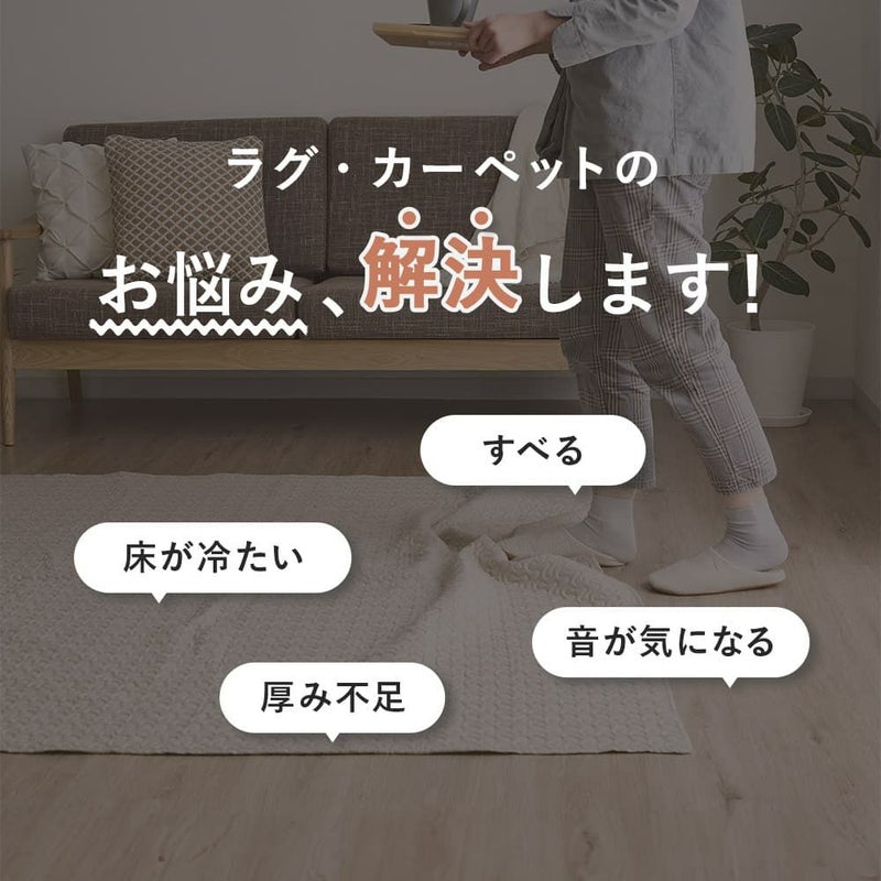 ラグの厚みをかさ増しすることで、機能性がぐ~んとアップする優れもの。 今あるラグの下にサッと敷くだけでまるで高級ホテルのようなふかふかの触り心地に大変身。