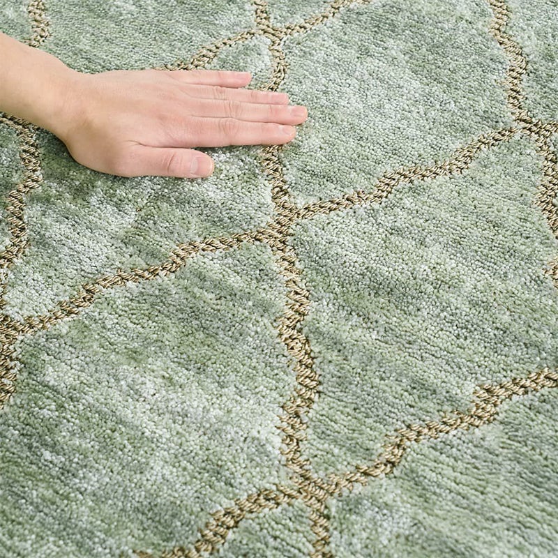 ラグの表面は、ふんわりとした柔らかなパイルを使用しており、いつまでも触っていたくなる心地良さ。まるでタオルに包まれているかのような、やさしい肌触りが楽しめます。
