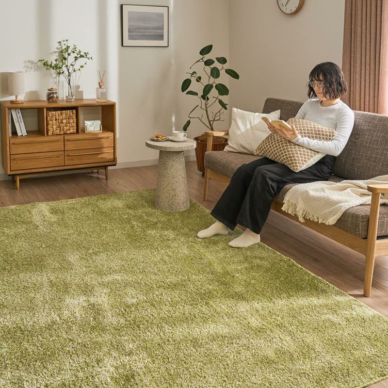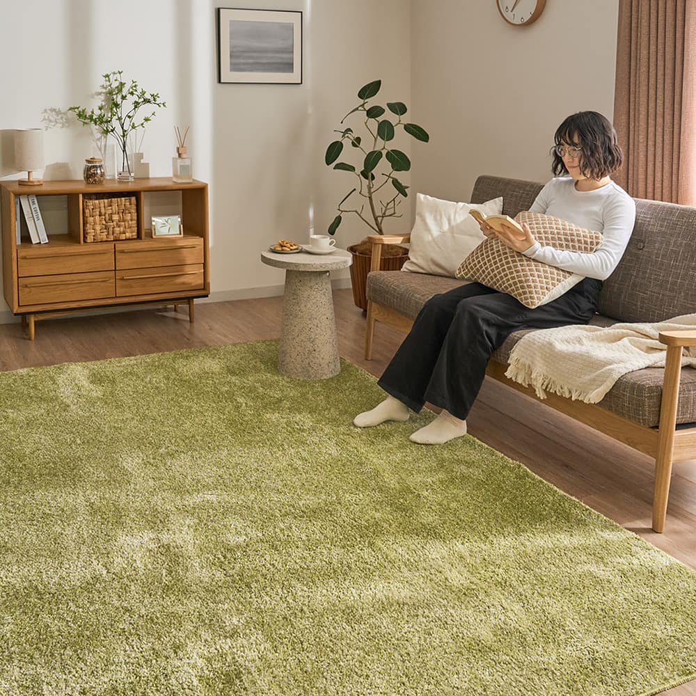調湿効果が梅雨のじめじめ感を解消し、さらっとした肌触りが暑いお部屋の対策にも活躍するい草ラグ。