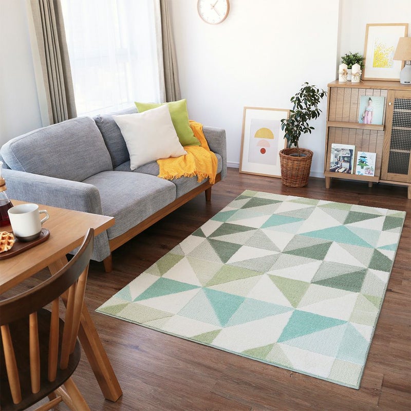 落ち着いた幾何学模様は、空間を広く見せる効果もあり、お部屋をより広々とした印象に演出します。インテリアに馴染むデザインが、あなたのお部屋を癒しの空間に。