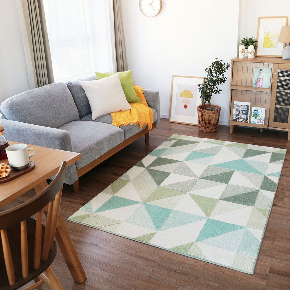 リサイクルポリエステルは、繊維製品やペットボトル・フィルムくずを原料として作られたもの。耐久性・強度・伸縮性が高く、形状安定性に優れています。またデザインはシンプルな幾何学模様で、幅広いインテリアスタイルにマッチします。