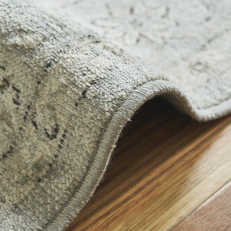 グレイッシュな色合いが、優雅で落ち着いた雰囲気を漂わせるモケット織りラグ。 繊細な柄はアンティーク風で、部屋に上品な雰囲気を与え、空間を格調高く変貌させます。 洗練されたデザインが、どんなインテリアにも調和し、より一層上質で特別な空間を作り上げてくれます。