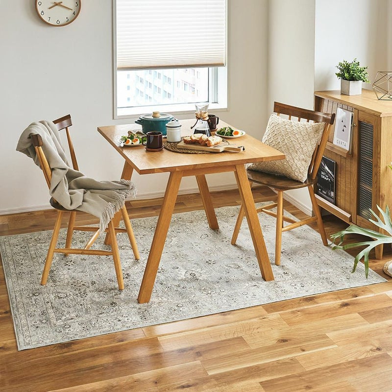 耐久性に優れたモケット織りで織られているので、テーブルや椅子をずらしても毛が抜けにくく綺麗な風合いを保つことができのも魅力の一つ。お気に入りのインテリアを摩擦を気にせず、自由にコーディネートをお楽しみいただけます。