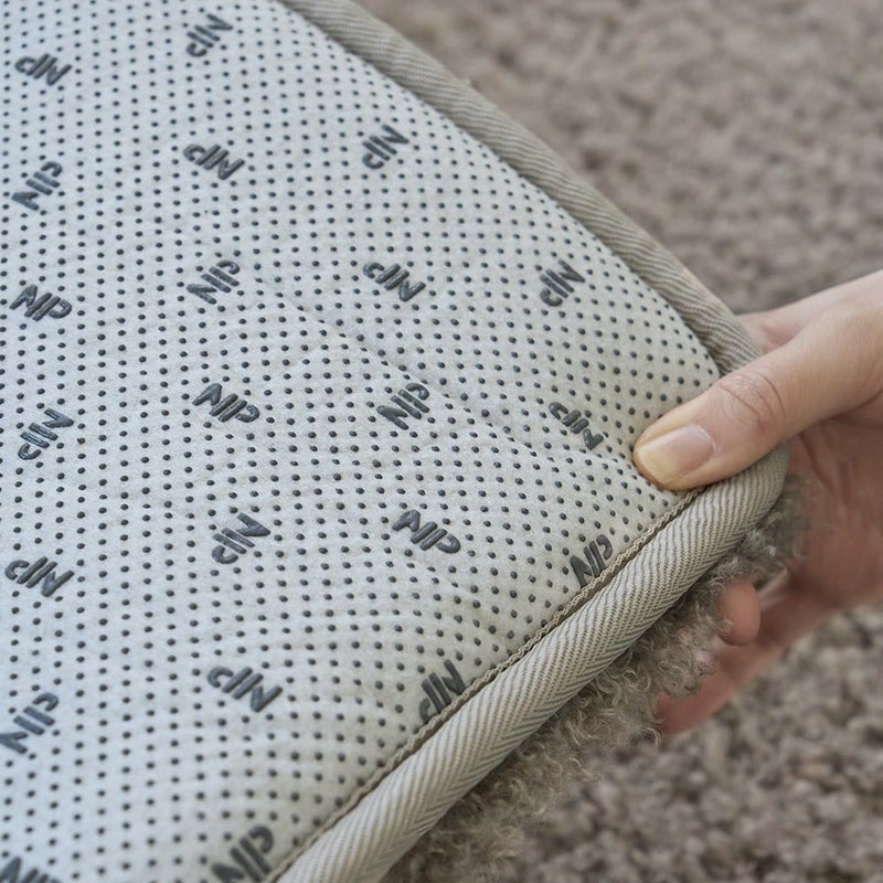 ラグの裏面には細かいドットの滑り止め加工が施されており、滑りやすいフローリングの上でもずれにくい安心仕様。家具を動かした時にラグが一緒にずれてしまう心配もありません。小さなストレスを軽減し、快適にお使いいただけます。