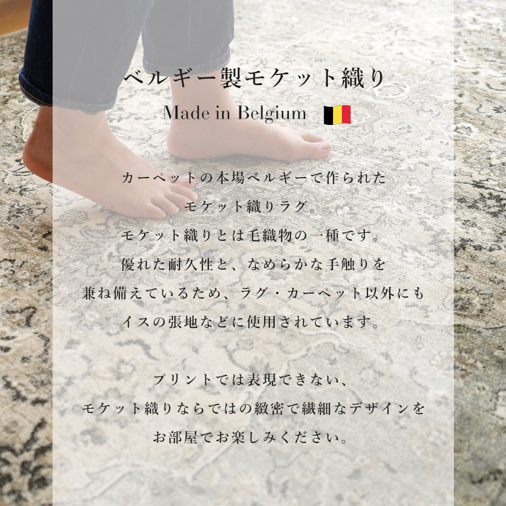 時を重ねたヴィンテージのような味わい深い風合いと、美しいメダリオン模様が魅力の一枚。その優しく上品なデザインはインテリアに溶け込み、お部屋を華やかに、そして深みのある空間へと昇華させます。光沢が加わることで、より一層高級感を漂わせる仕上がりです。