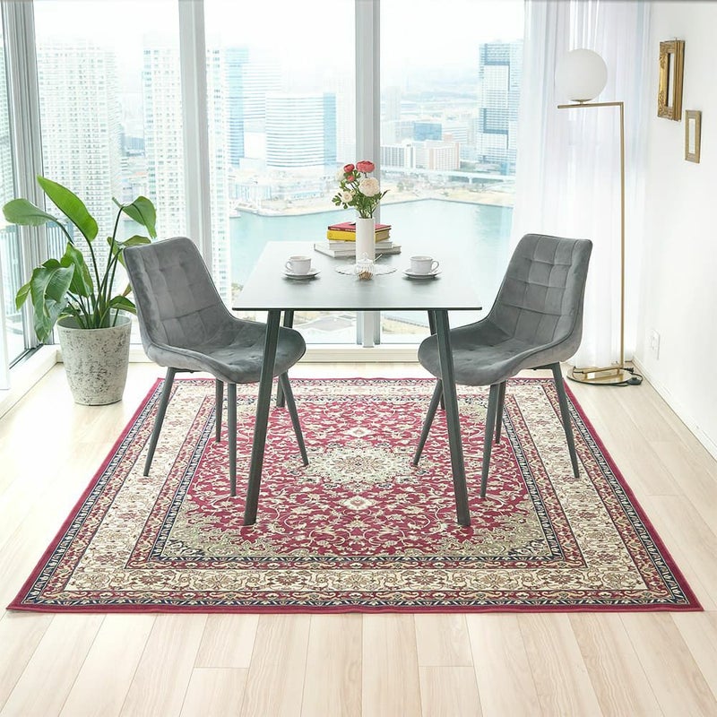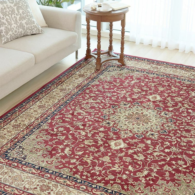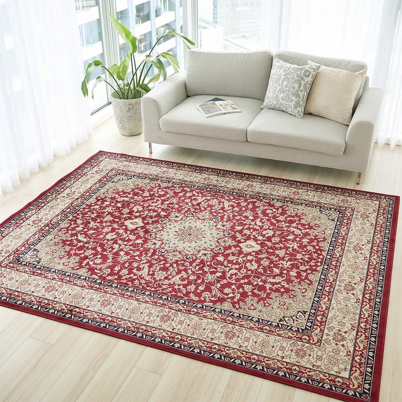 お部屋が格調高い雰囲気にまとまりそうな高級感のあるデザイン。ペルシャ絨毯の伝統柄が描かれた美しいモケット織りのラグで、素敵な空間作りをお楽しみください。