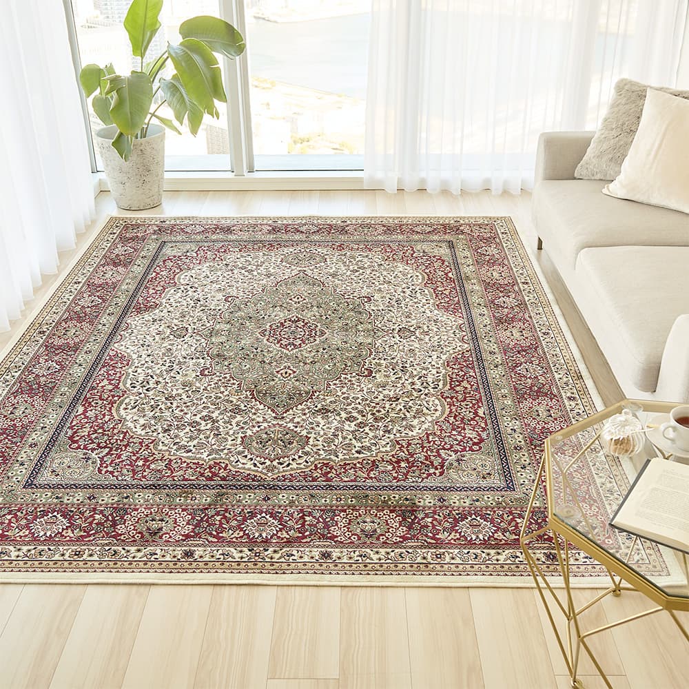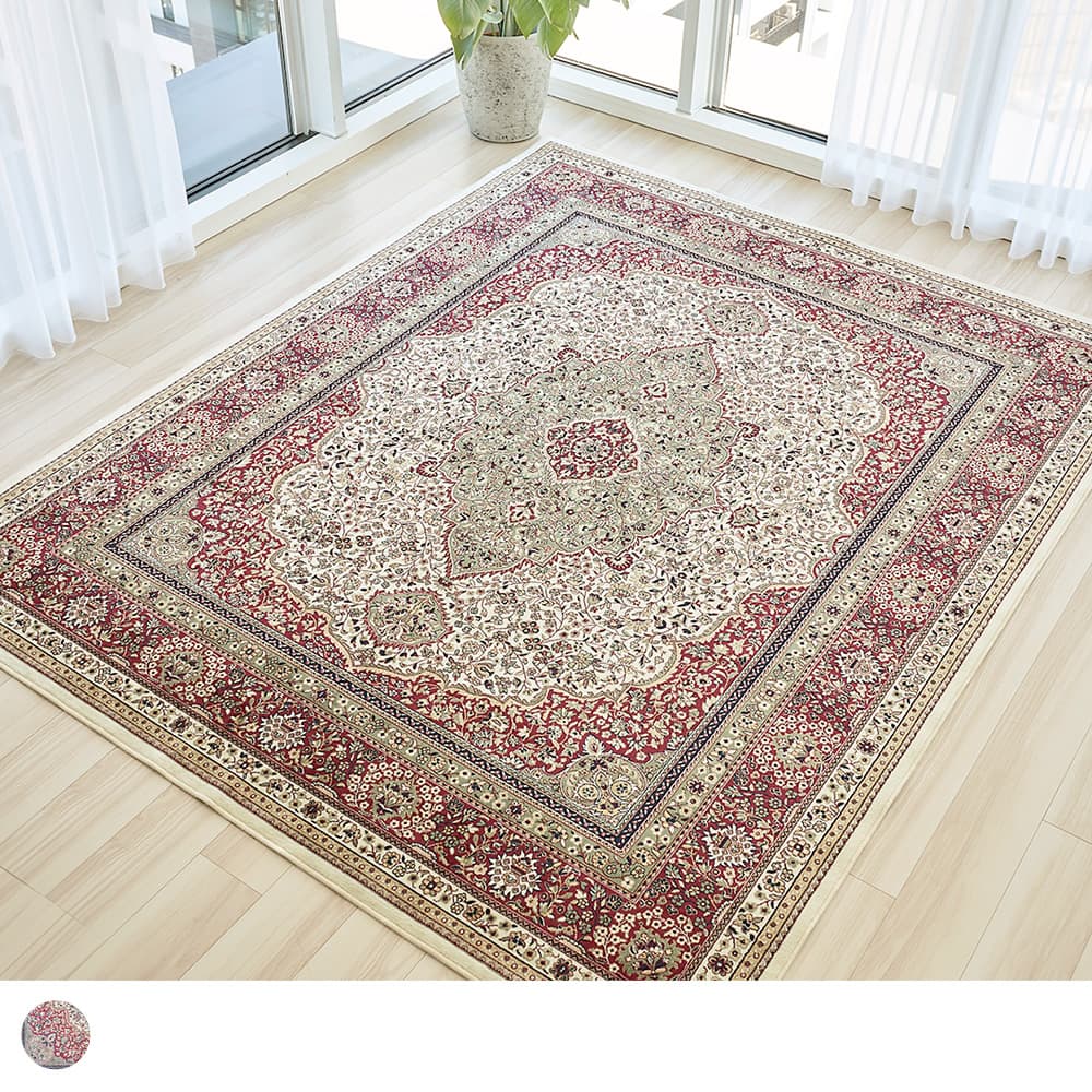 細部までこだわったアラベスク模様は、思わず目を奪われる美しいデザイン。ベージュ×レッドの落ち着いた上品な色合いは、まるで高級ホテルのような重厚感ただよう雰囲気を演出してくれます。