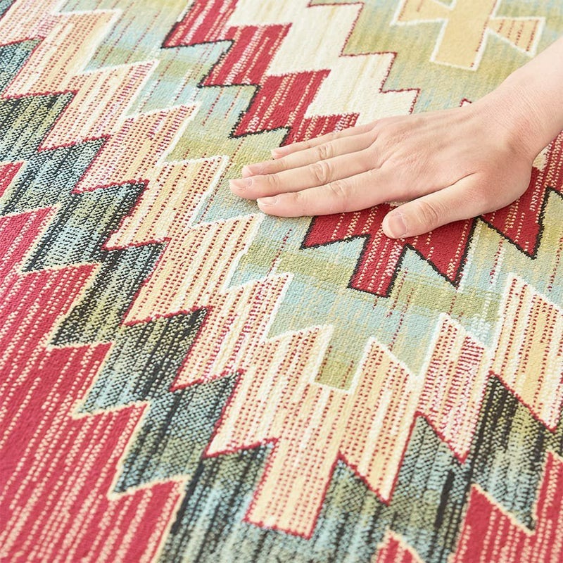 キリム模様のデザインは一柄一柄多色の色使いで織られており、高級感ただよう美しい仕上がり。かすれのような風合いも相まって、カジュアルスタイルのお部屋から洗練された大人なお部屋まで様々なお部屋に合わせやすいラグです。