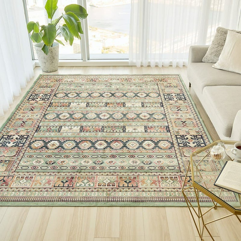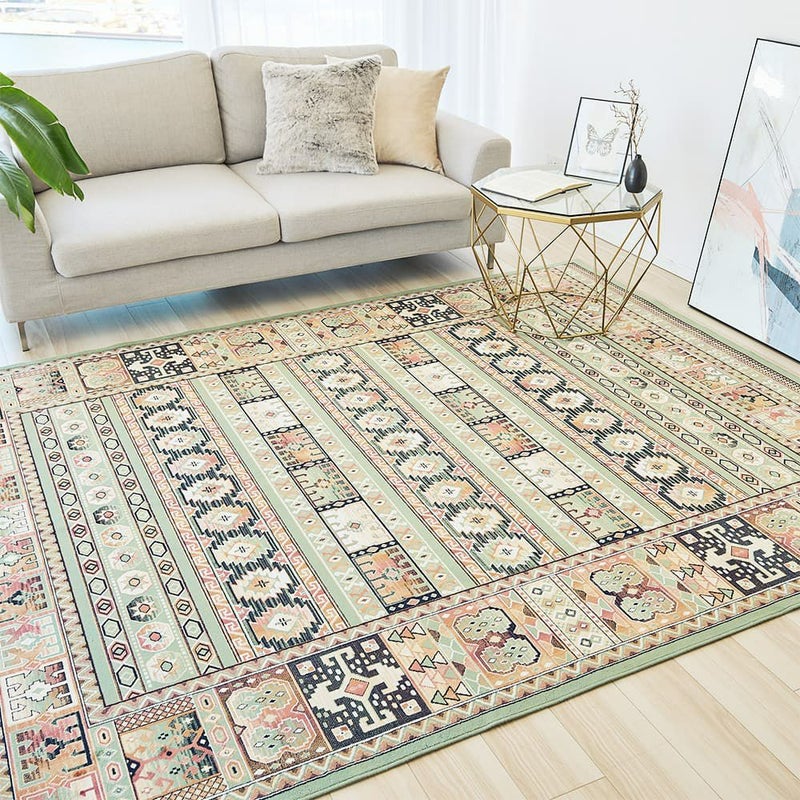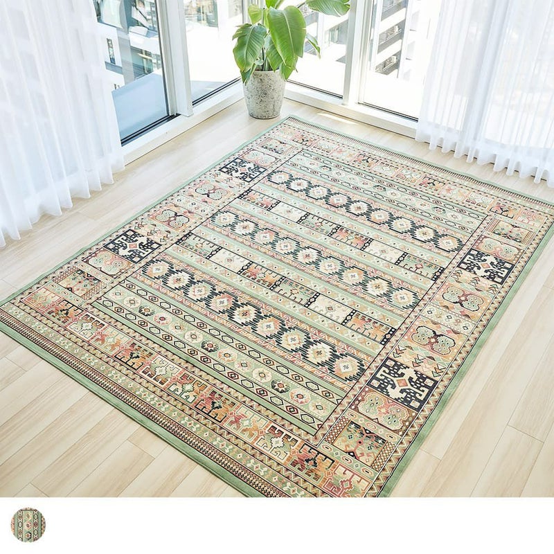 一面にデザインされたキリム柄が、贅沢な華やかさをお部屋にプラスしてくれる一枚。温かみのある優しい色使いで仕上げられ、訪れる人を温かく迎えてくれます。ラグを敷いて、心安らぐオリエンタル空間を作り上げてみませんか。