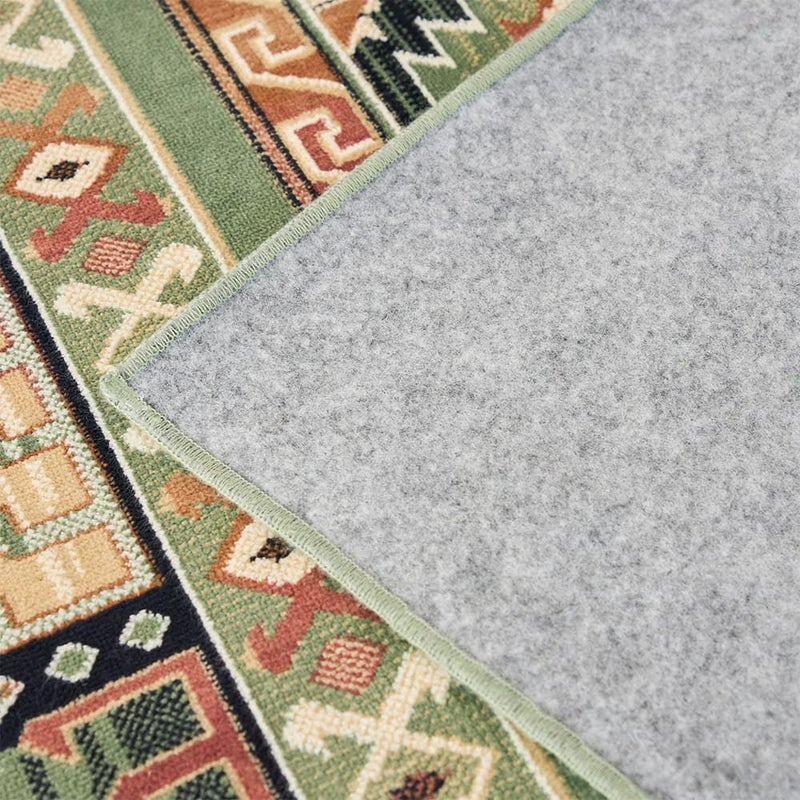 一面に描かれた贅沢なキリム模様が美しくオリエンタルな雰囲気ただようモケット織りラグ。多色の色使いで豪華な仕上がりながらも、トーンが落ち着いた温かみのある色合いで仕上げられており、お部屋に取り入れやすい一枚です。