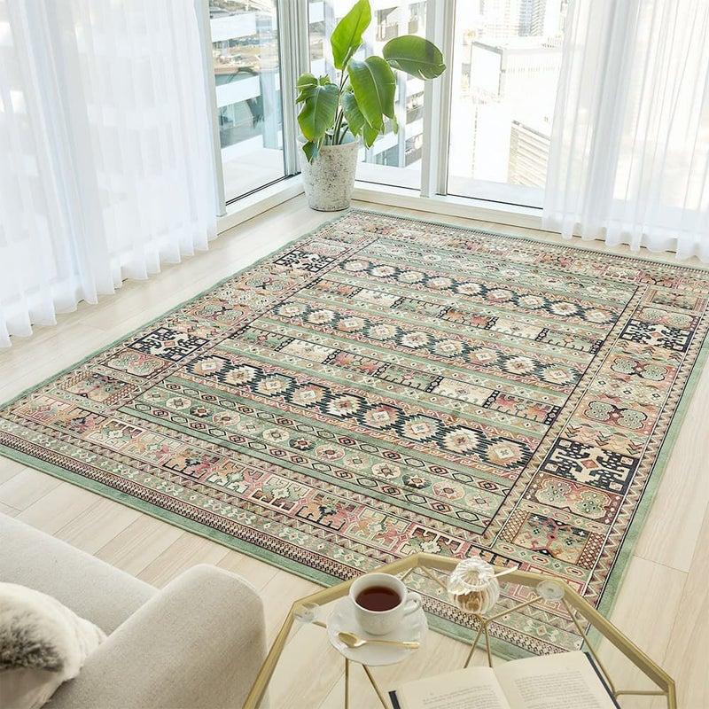 緻密に描かれた、伝統的なキリム柄が魅力的なラグ。ラグジュアリーな雰囲気にまとまっているので、一枚敷くだけで華やかで上品なお部屋に仕上がります。