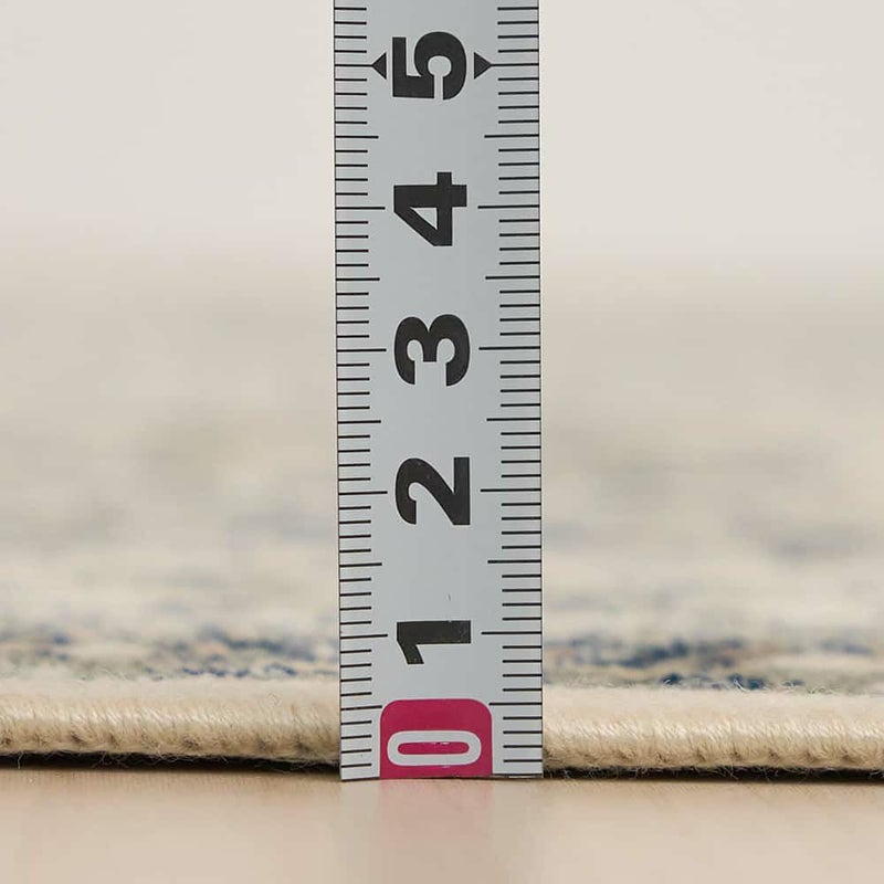 緻密に表現されたダマスク模様とかすれのようなヴィンテージ感が、優雅な雰囲気ただようモケット織りラグ。ベージュのベースカラーにトーンが抑えられたネイビー配色で仕上げられ、シックで上品な空間を演出します。