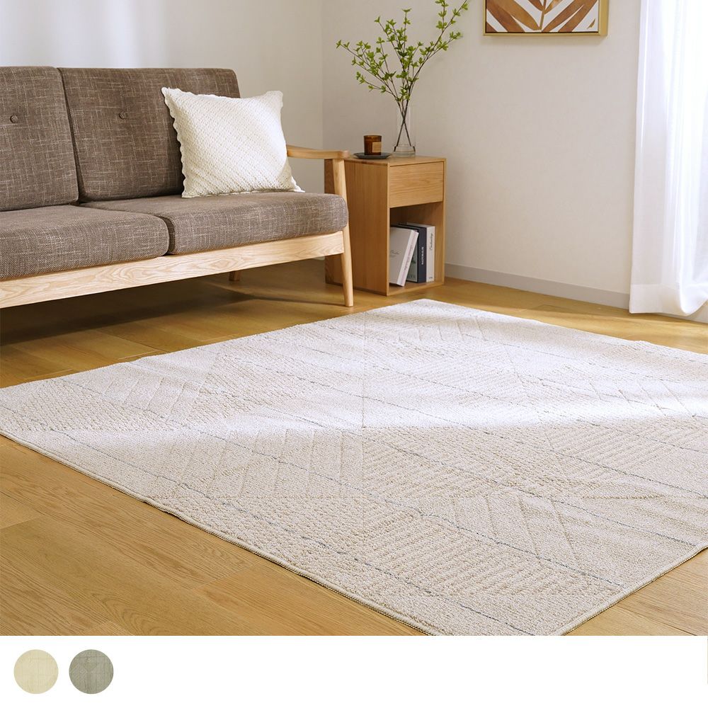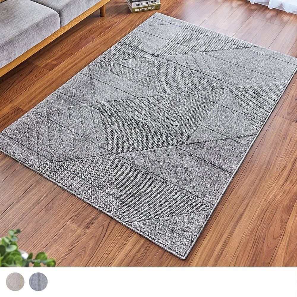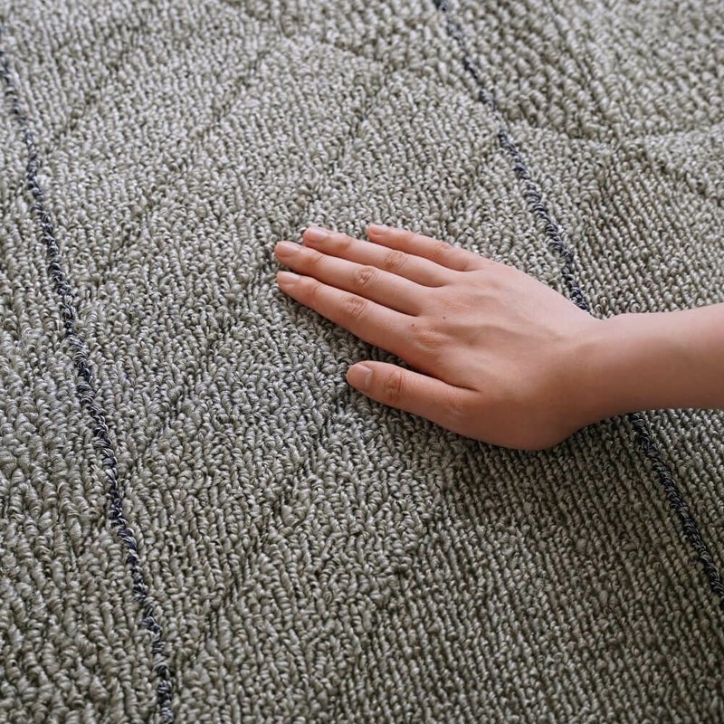 シンプルモダンな雰囲気に合うコーディネートしやすい幾何学柄。 ループパイルで立体感を表現した、落ち着いた印象のデザインは、幅広いインテリアに◎