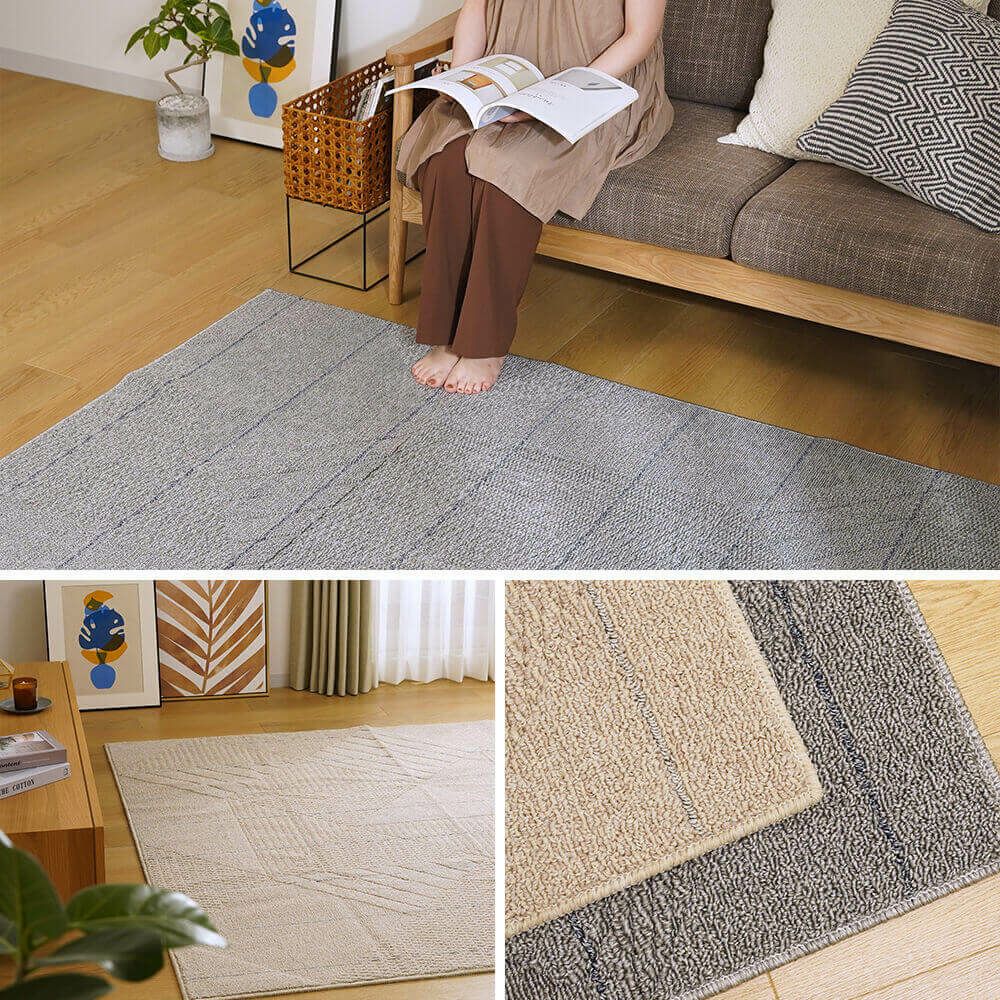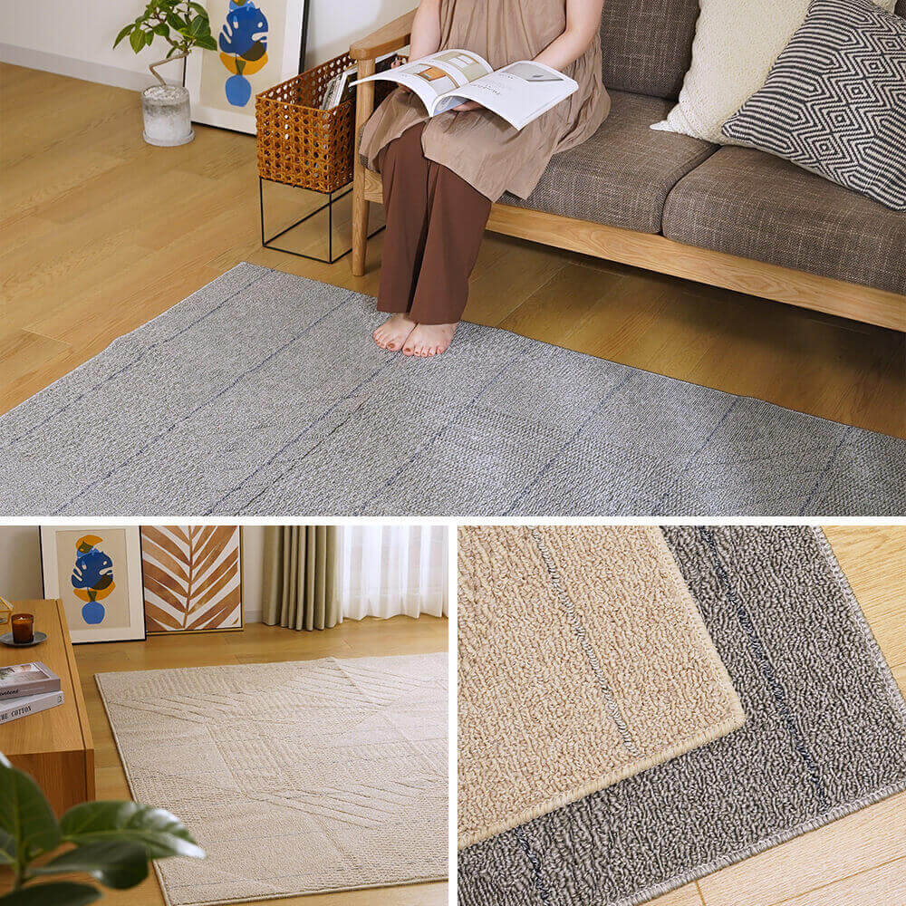 床暖房、ホットカーペットでも使用できるよう、耐熱加工を施しています。オールシーズン快適に使えるラグです。