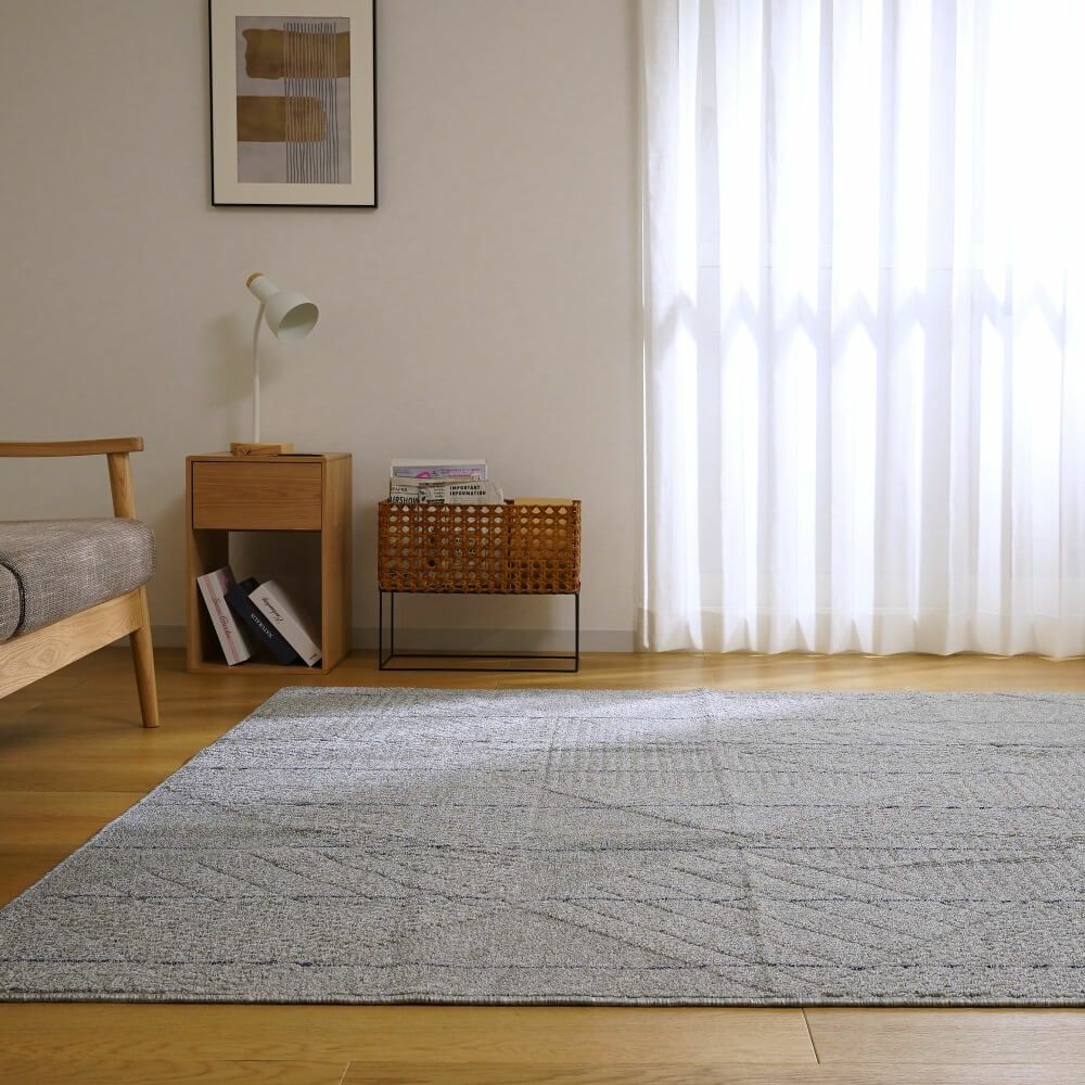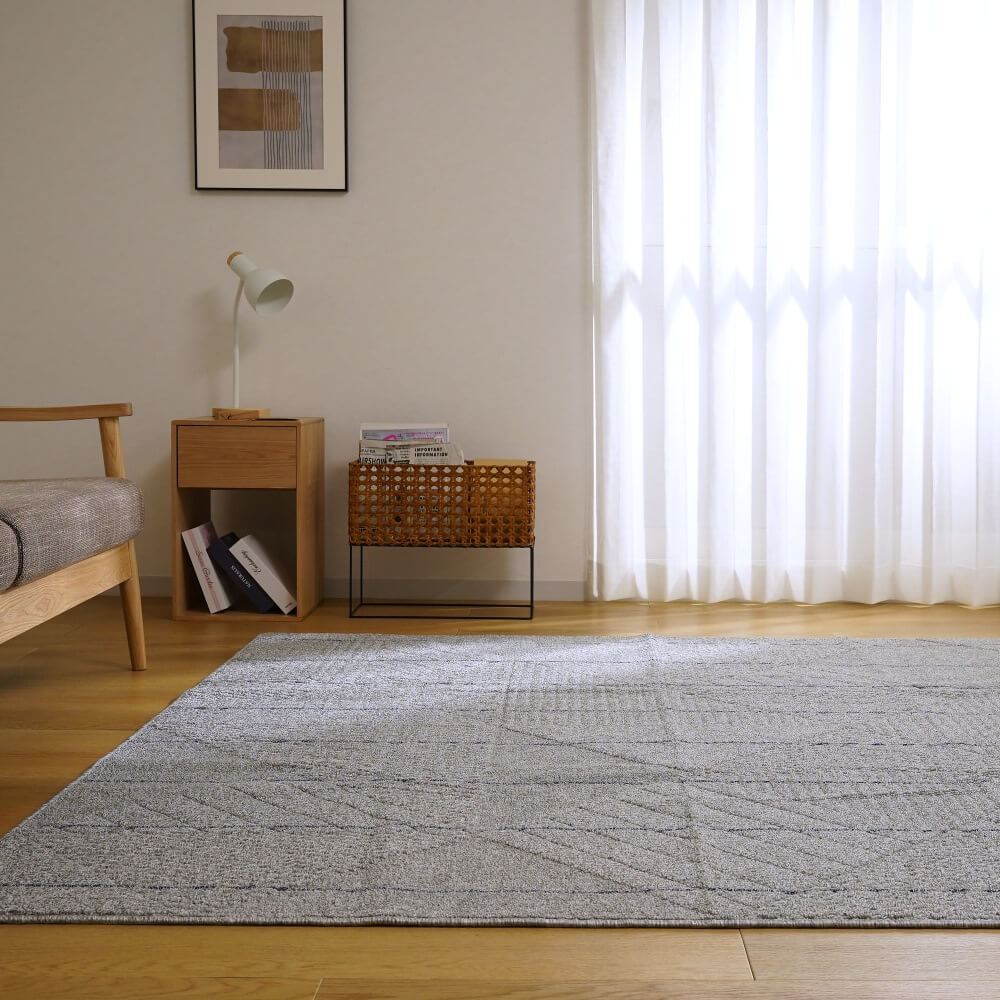 調湿効果が梅雨のじめじめ感を解消し、さらっとした肌触りが暑いお部屋の対策にも活躍するい草ラグ。