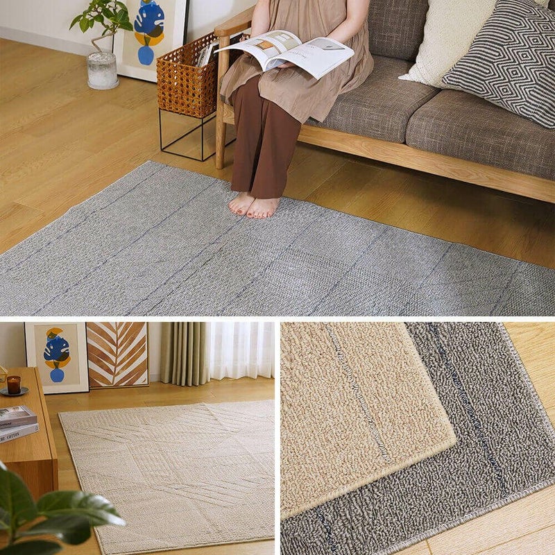 紙と布の中間のような素材「不織布」を施すことにより、通気性、吸水性、保湿性も抜群のラグ。柔らかな素材なので床を傷つけにくいといった効果も〇