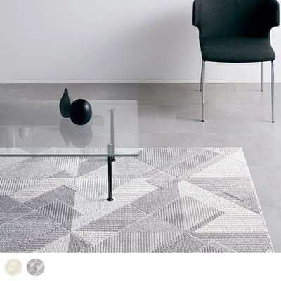 ガラスの重なり、氷の反射などからインスピレーションを受けたリビングラグです。防ダニ加工で快適な生活をサポート
