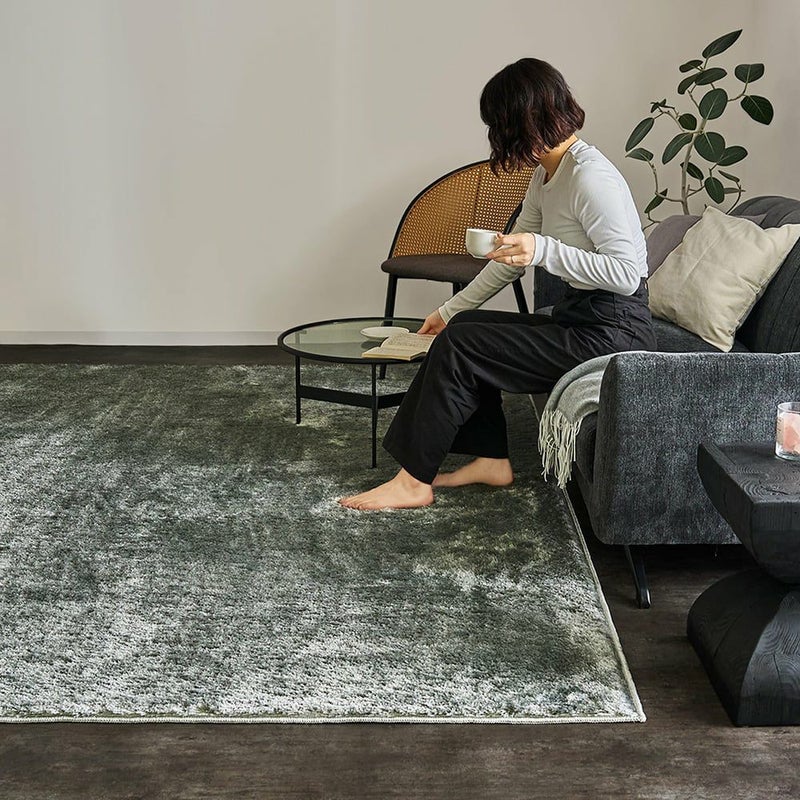 高密度で織られており、サラっと優しいタッチ。思わずうっとりしてしまうボリューム感が足元を包みます。日々の疲れを癒しながら、自分だけの極上のひとときを楽しむにふさわしいラグです。