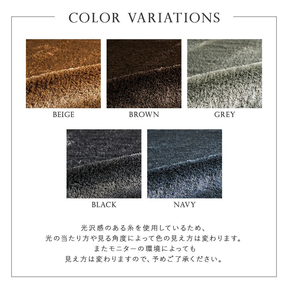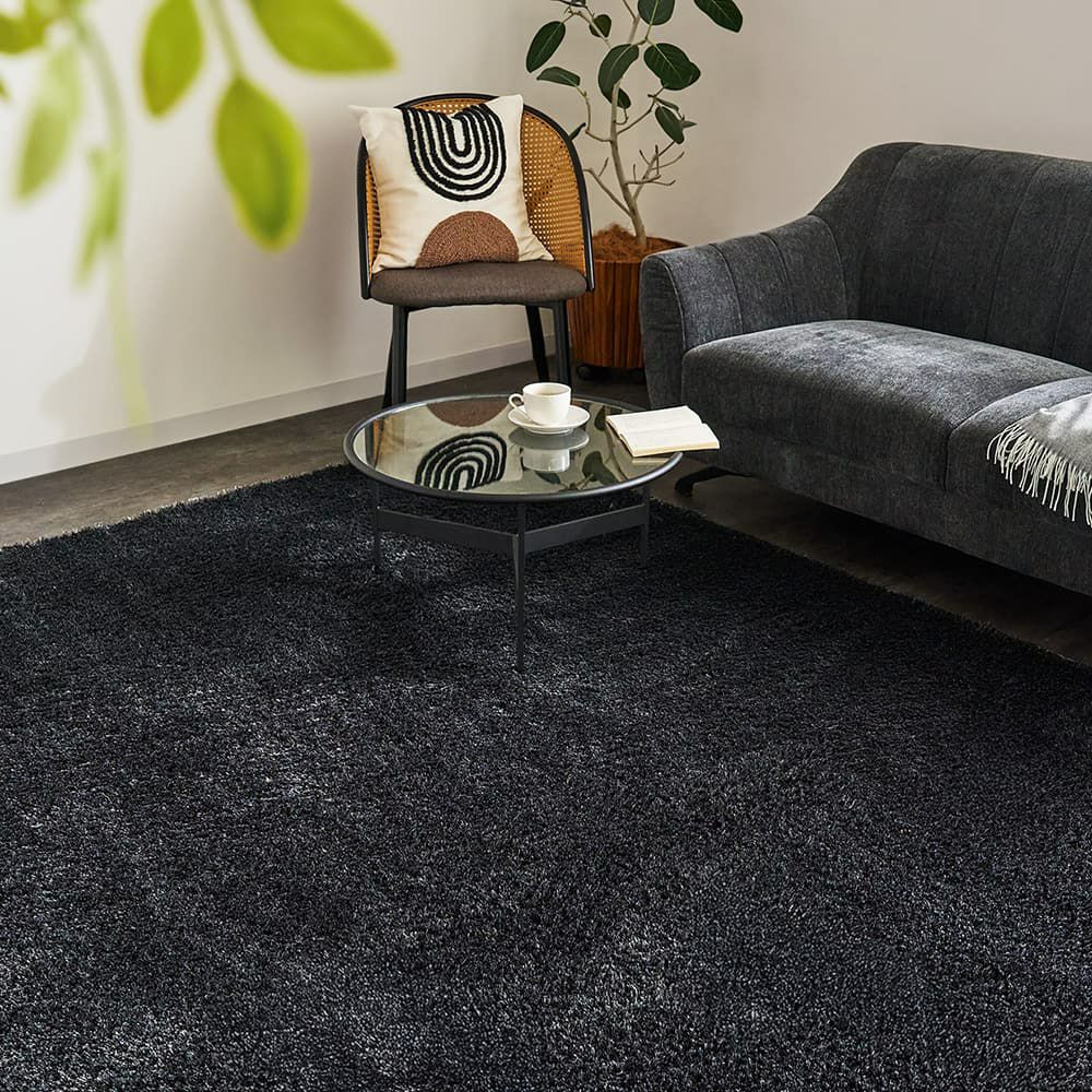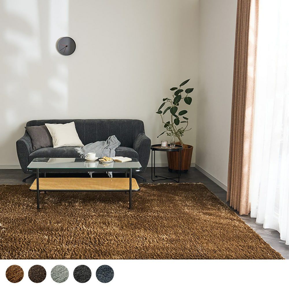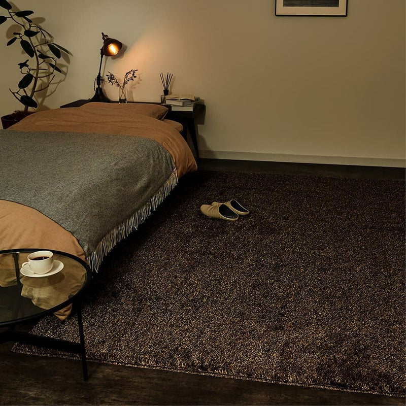光沢感のあるシャギーとシックな色合いが落ち着きのある大人の空間を演出します。安心品質の日本製で、快適に過ごせる機能が満載の一枚。