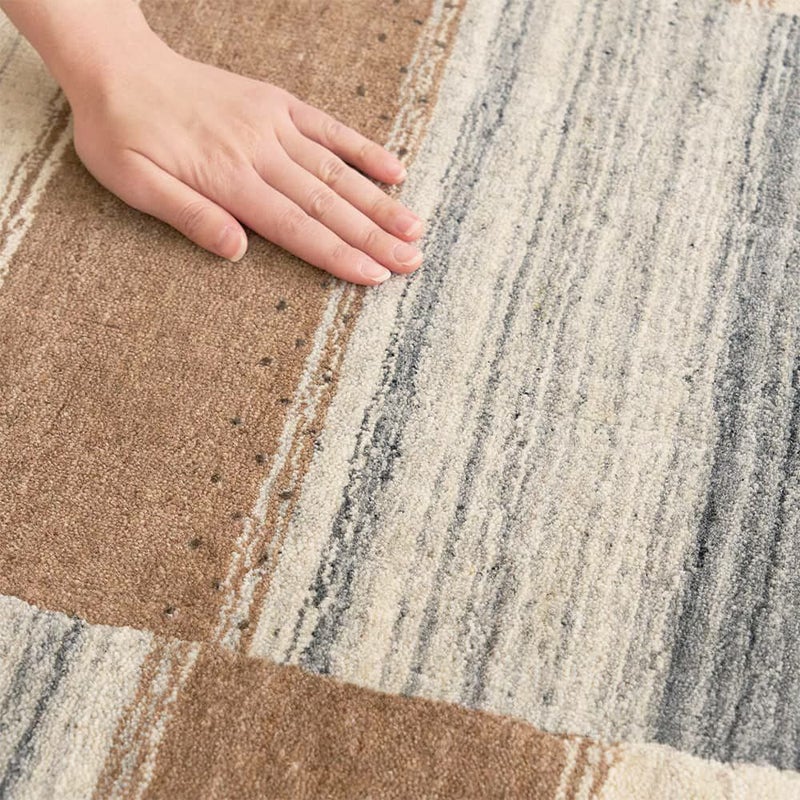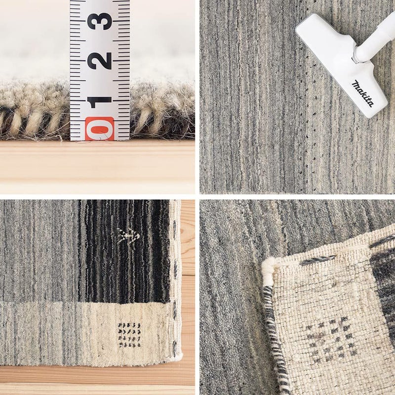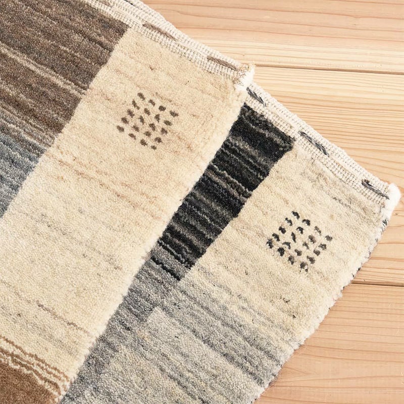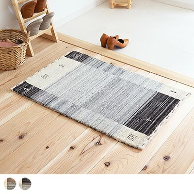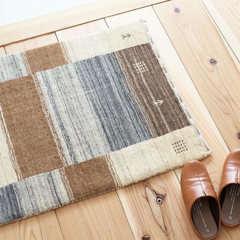 ギャッベ柄の暖かみある風合いは残しつつ、シックにもモダンにもコーディネートがまとまる大人カラーの玄関マット。防炎なので暖炉周りに置くのも◎革靴の多い玄関に置いても、サマになる1枚です。