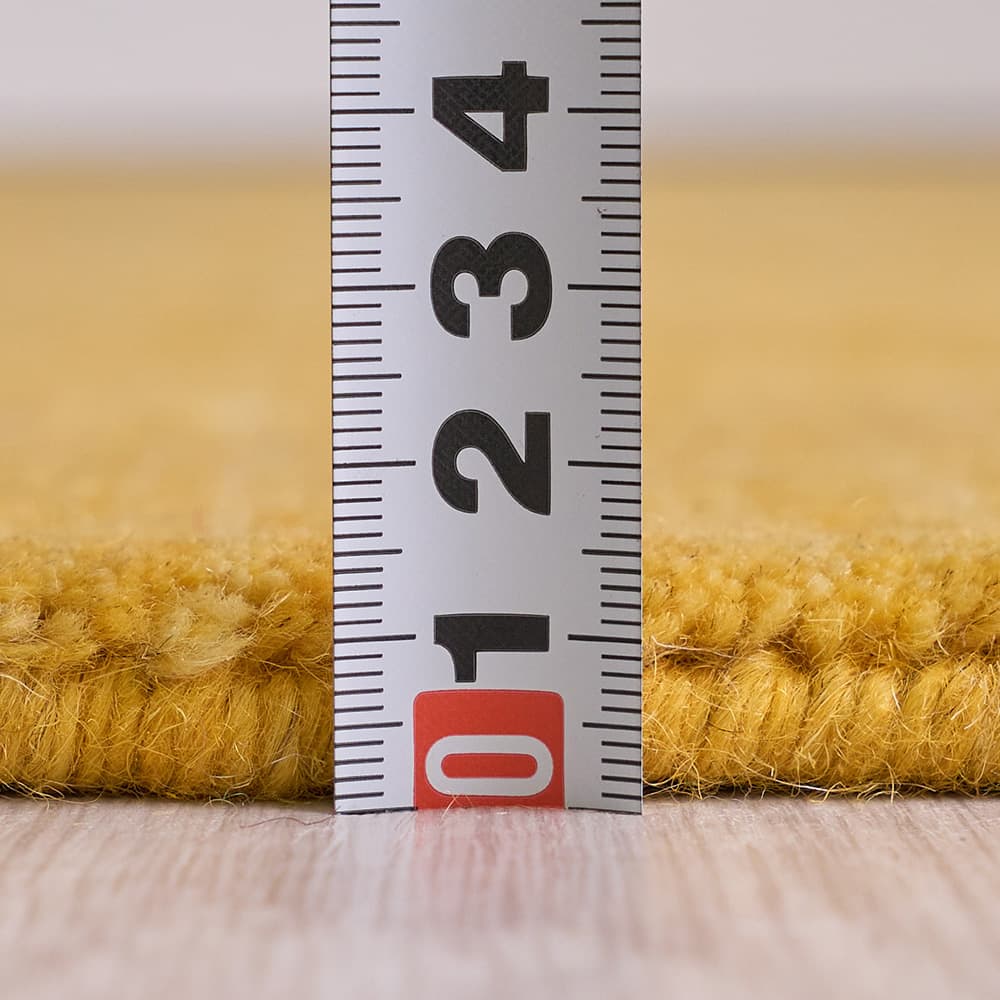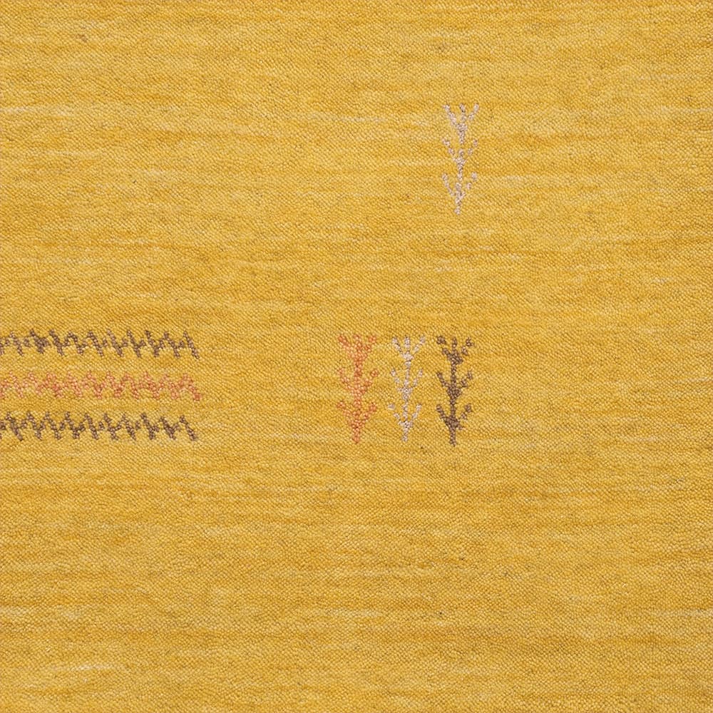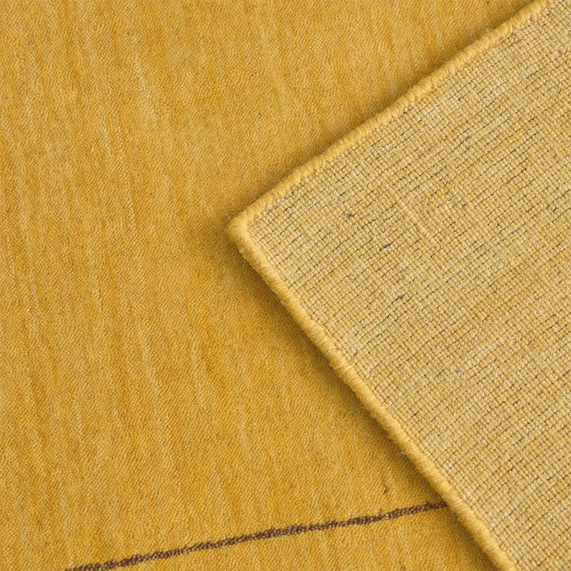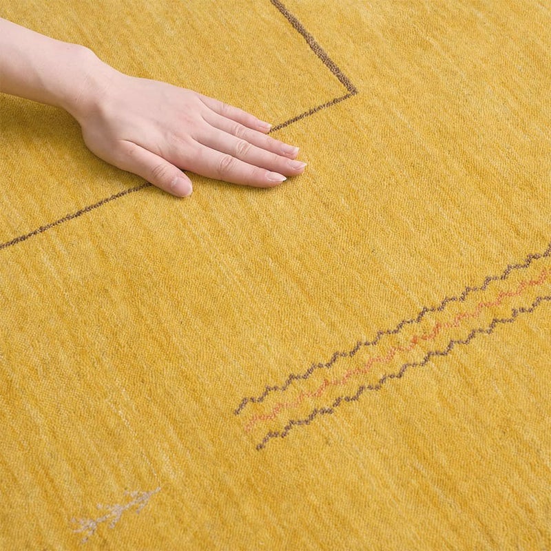木目によく馴染むナチュラルさもありながら、ぱっとお部屋が華やぐイエローのギャッベラグ。暗すぎず鮮やかすぎない魅惑のマスタードイエローが空間に映えます。ウールを手織りした、高品質な風合いも魅力の1枚です。