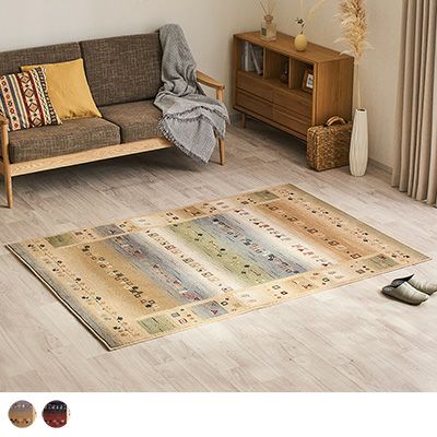 ギャッベ柄を描いたウィルトン織ラグ
