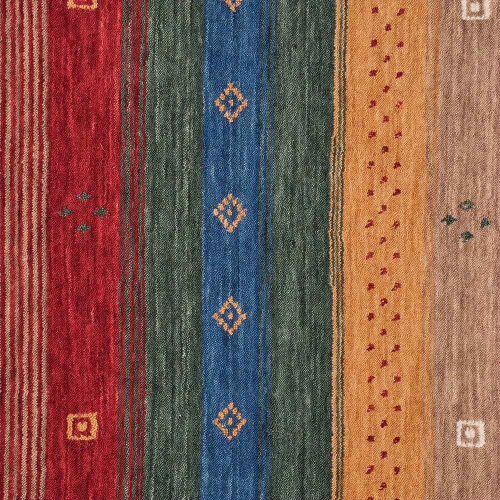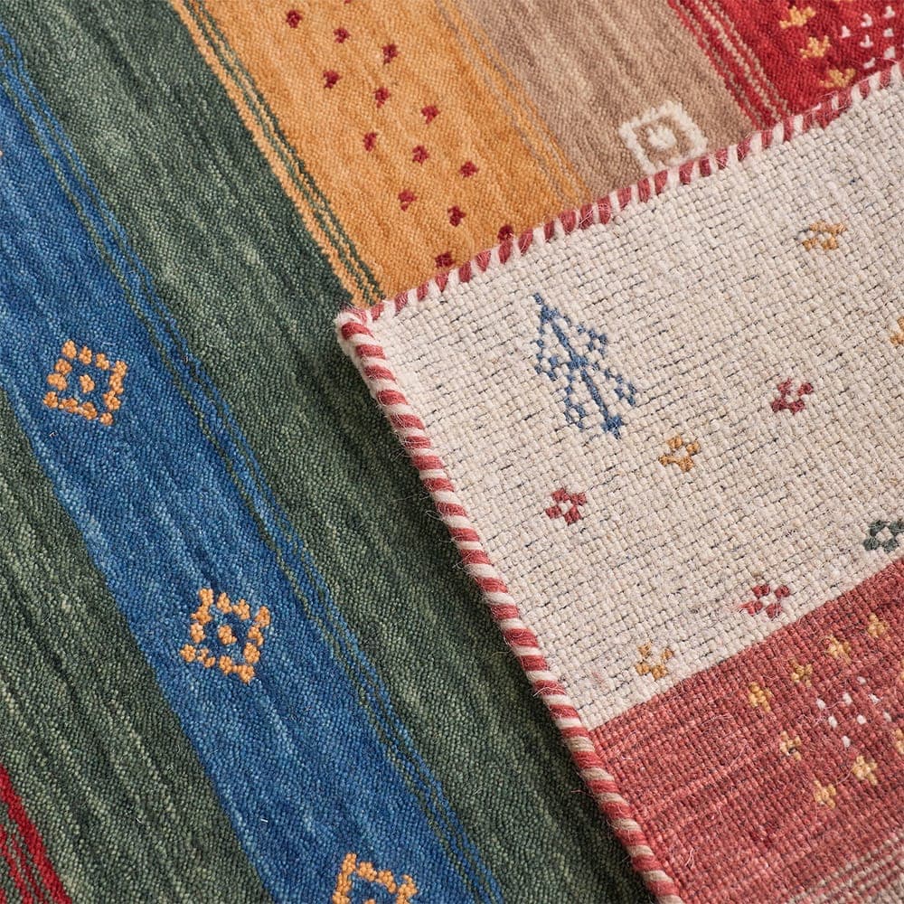 ギャッベが生まれたイランのバザールを思わせるような、カラフルで陽気な雰囲気のデザインラグ。市場を歩いて回る時のワクワク感や、異国情緒をお部屋で存分にお楽しみいただける1枚です。
