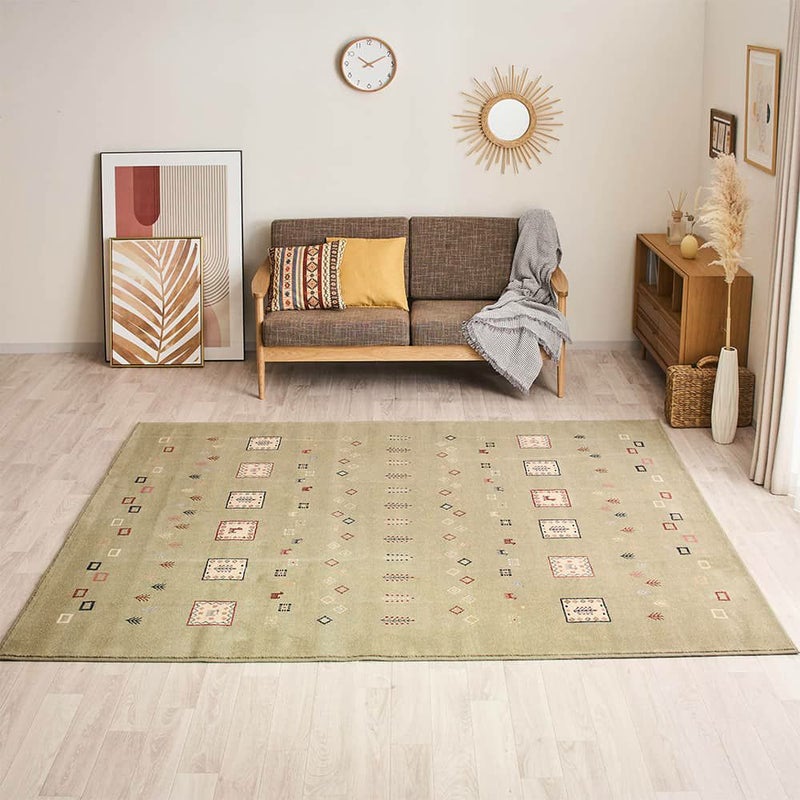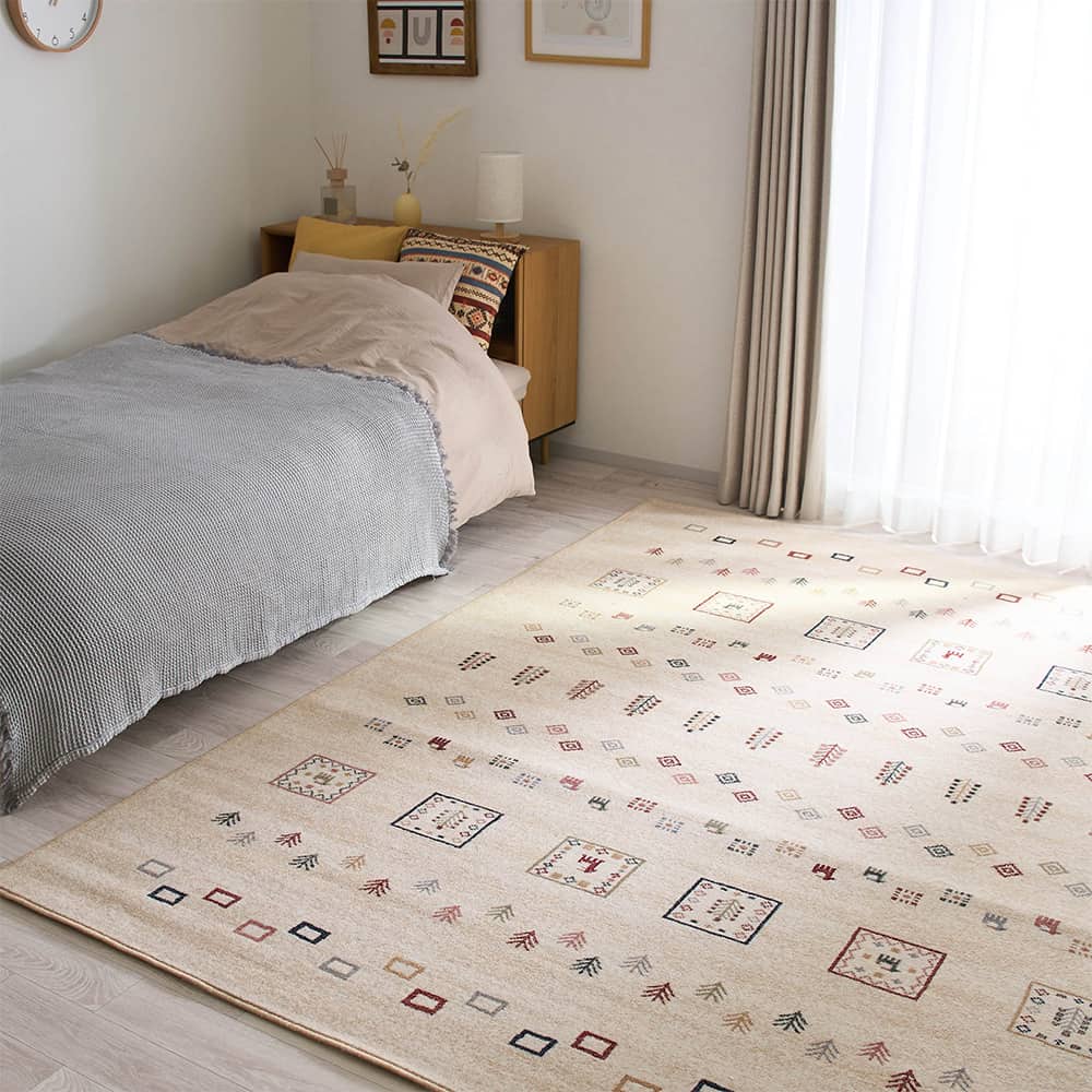 人気のウィルトン織りにギャッベ柄をデザインした高品質ラグ