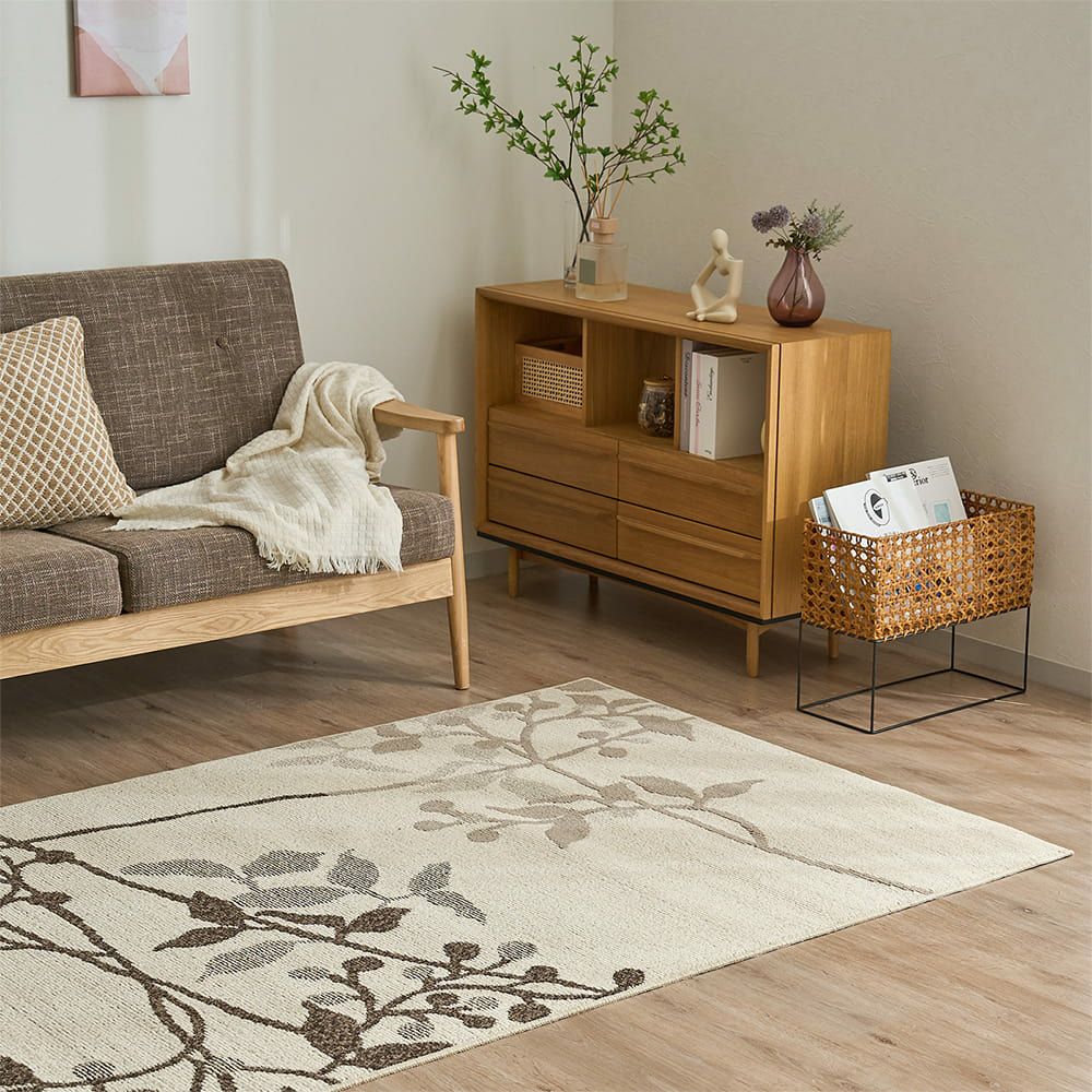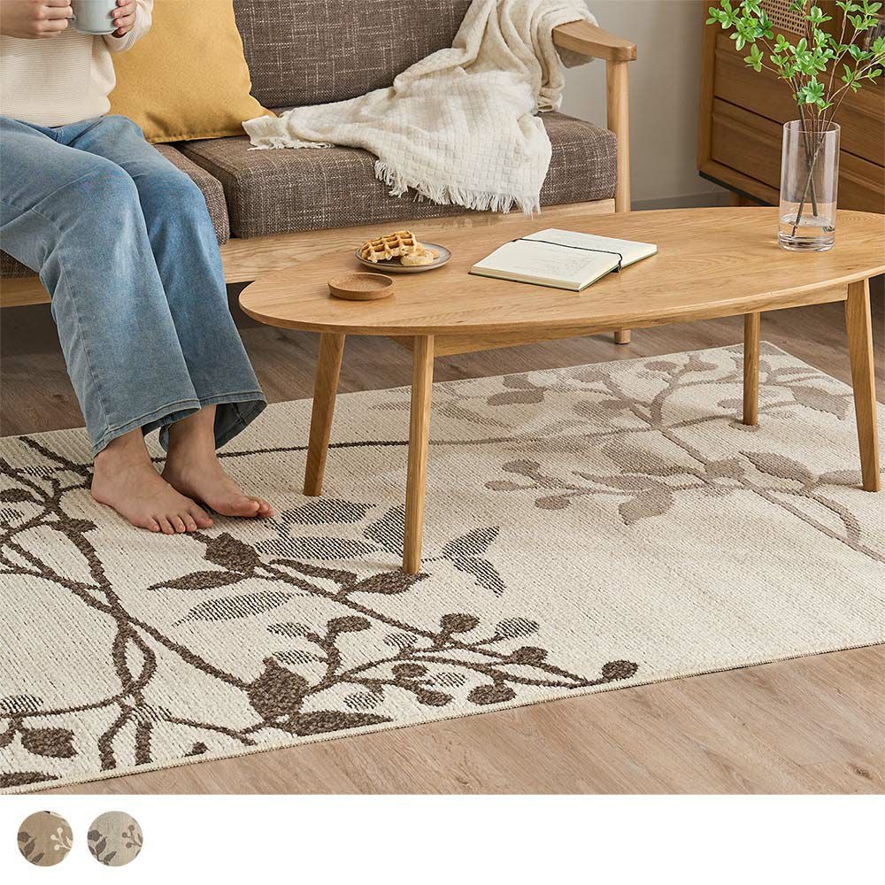 取り入れやすい無地のラグから、おしゃれなリーフ柄、ほっこりやわらかな雰囲気の北欧柄まで、幅広くご用意しました。