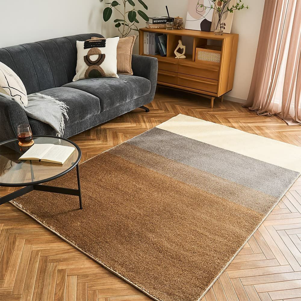 スタイリッシュな空間にぴったりの、モダンなカラー・デザインのラグ。