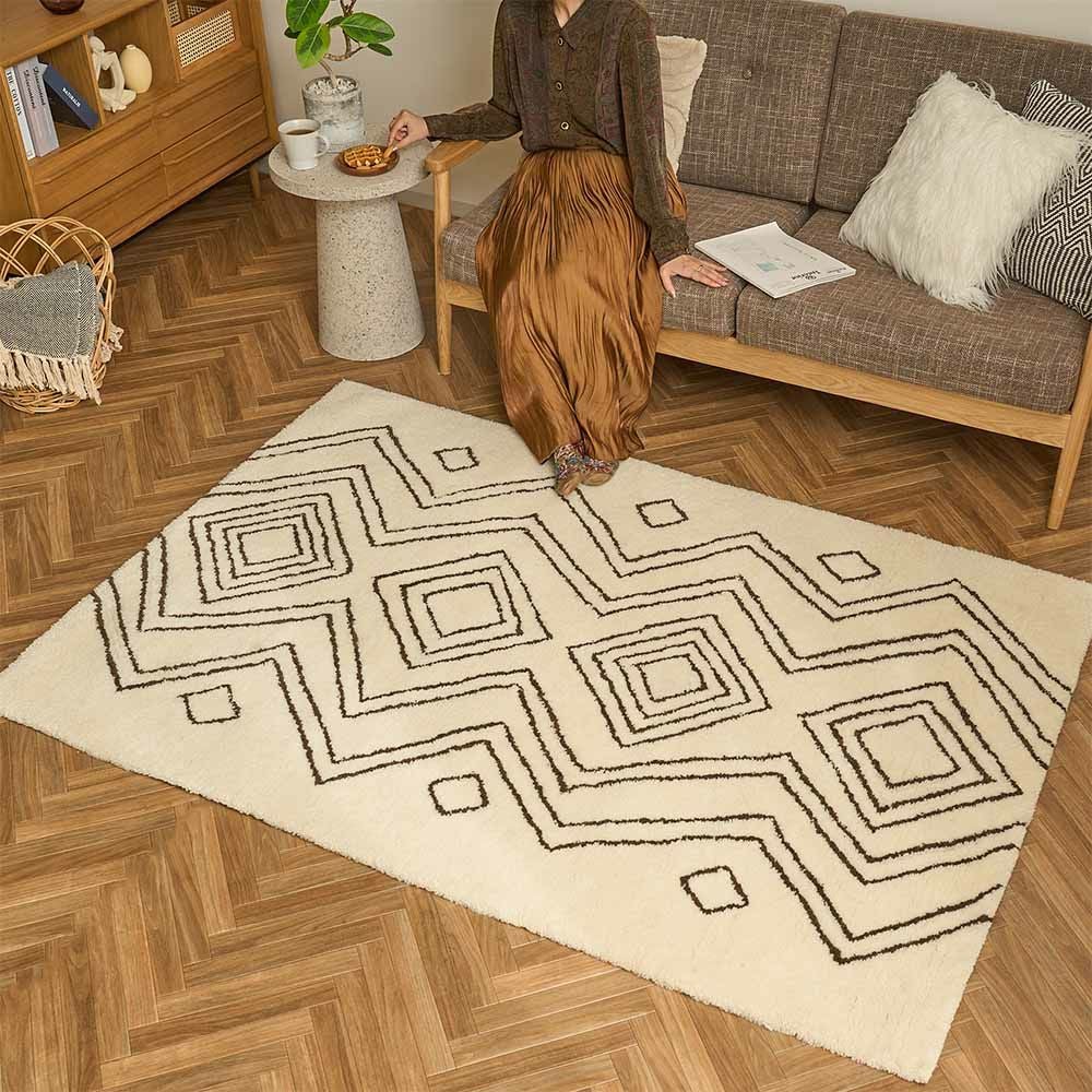 ホワイトやベージュといった柔らかくあたたかみのあるカラーのラグを集めました。