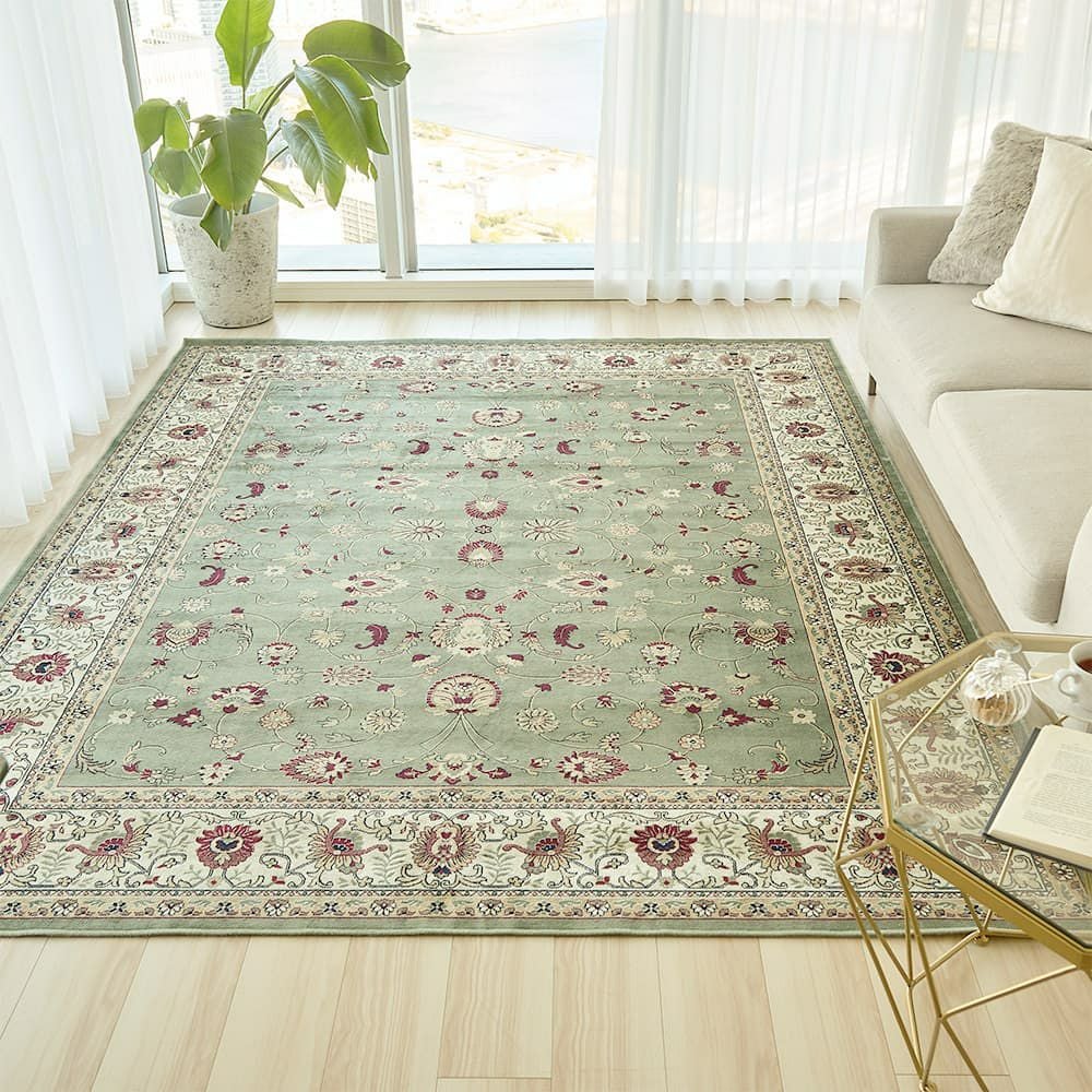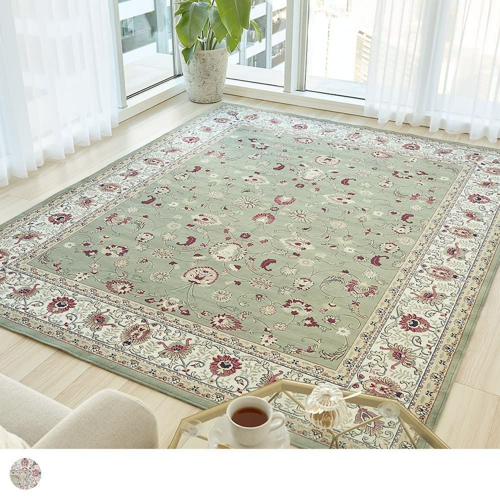 18世紀半ばにイギリスのウィルトン地方で作られた伝統的織物。敷くだけで高級感のあるインテリアを演出できます。