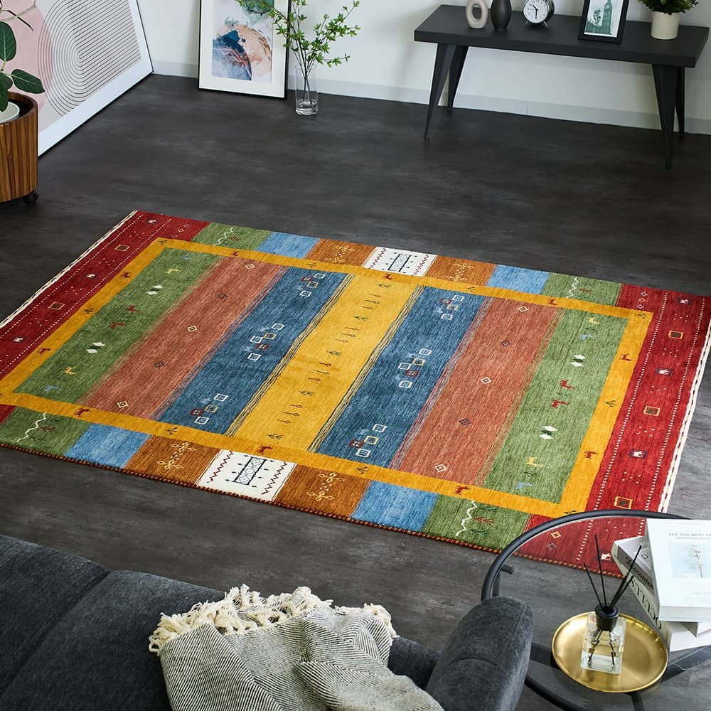 手織りで丹精を込めて織りこまれるギャッベ。高品質のウィルトン織りや、お手頃価格のギャッベ風デザインラグを揃えました。