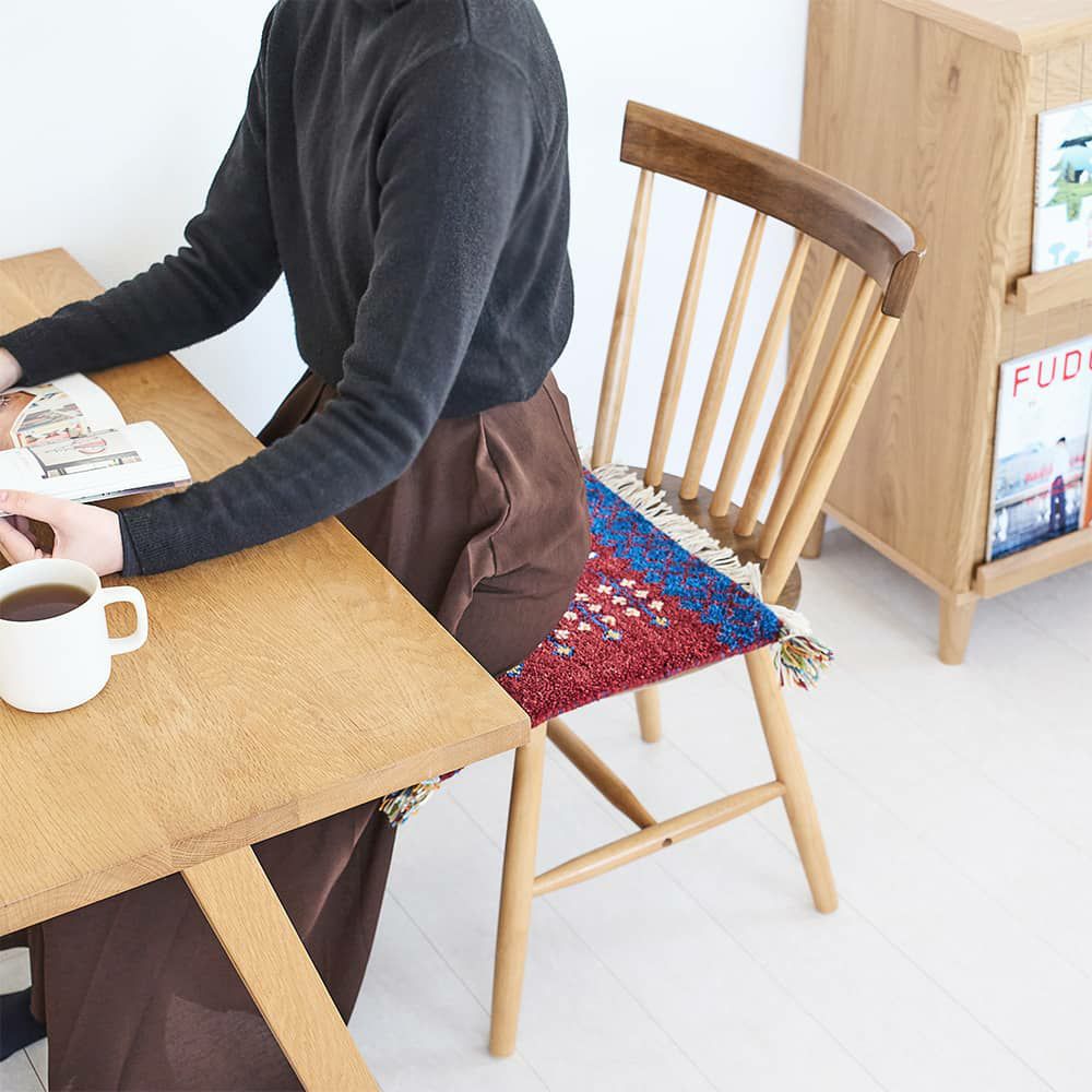 椅子やベンチへのちょい置きにぴったりのチェアパッド。座面に彩りをそえてくれるだけでなく、座り心地もアップさせてくれる優れものです。