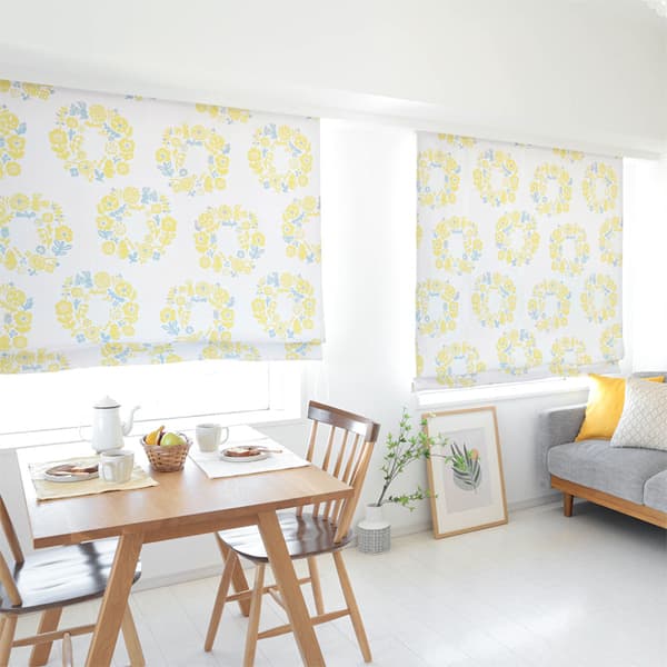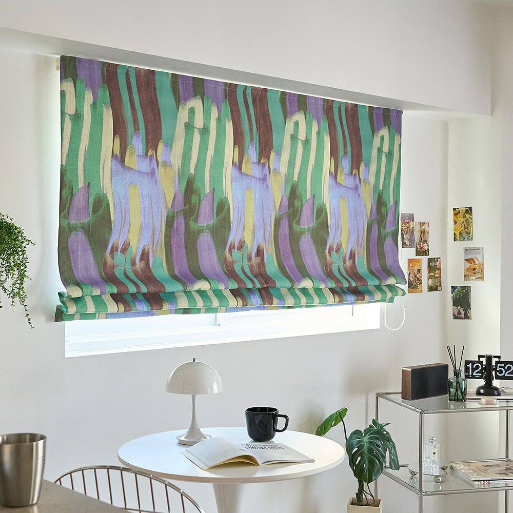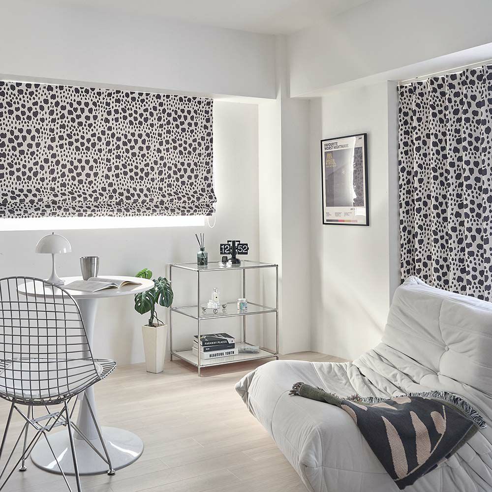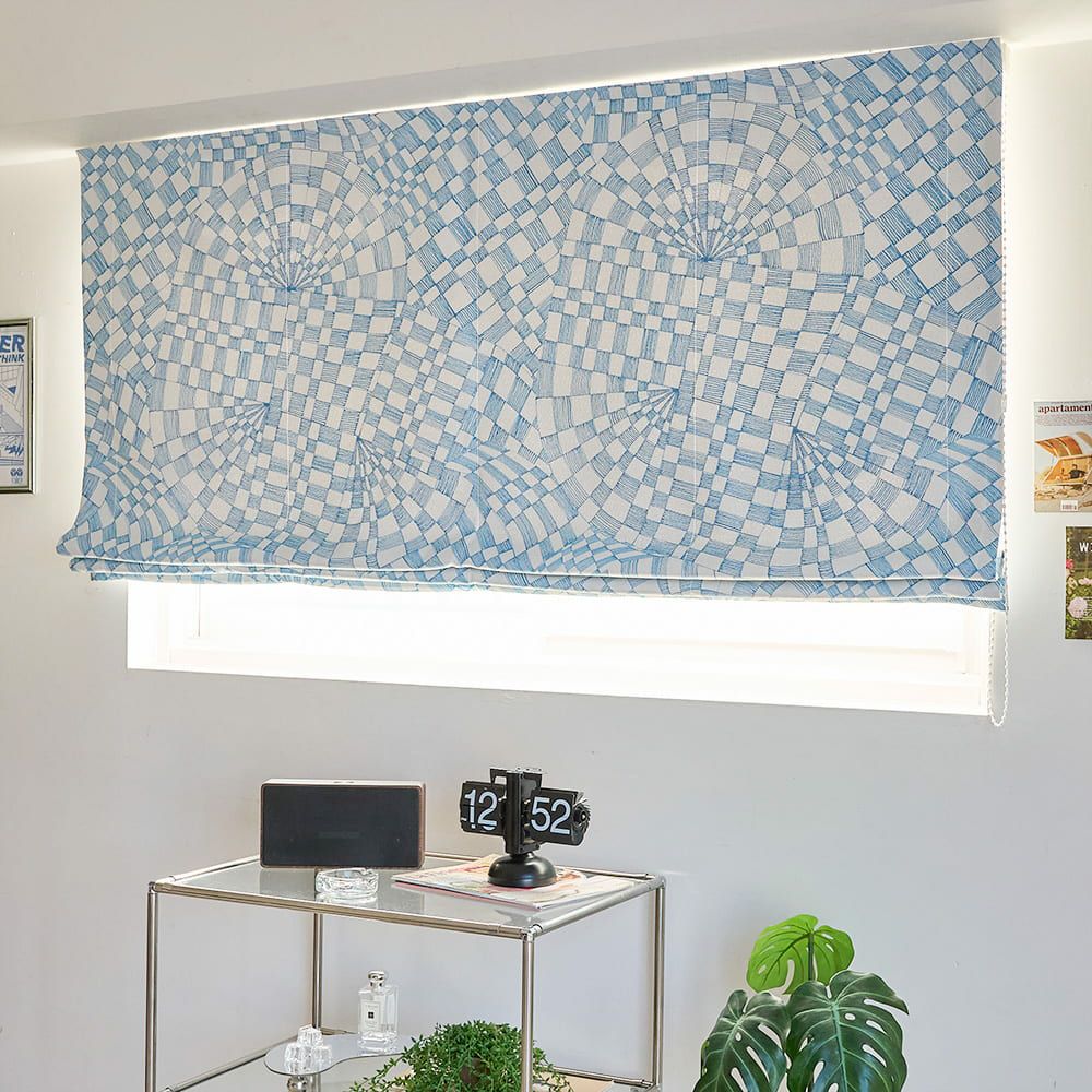また、シェードカーテンはカーテンのようにヒダをとらないフラットな仕上がりなので、柄のデザインを楽しみたい場合におすすめです。特に大きな柄の場合、カーテンだとヒダに隠れてしまいますが、シェードカーテンだとそのままフラットに見えるので、アートのような感覚でインテリアを飾る事も。