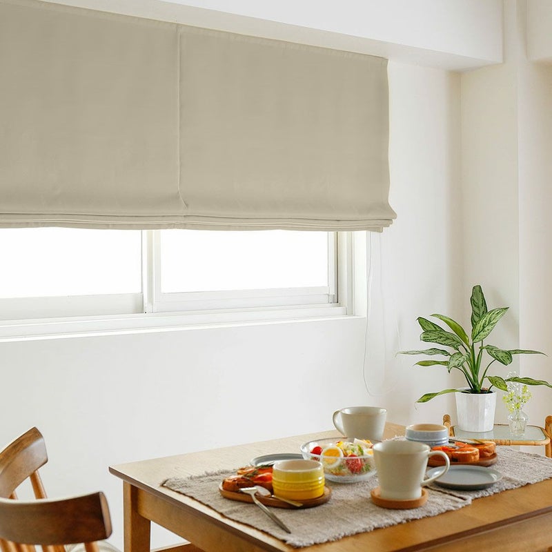 ヒダもなくすっきりまとまる事で、窓回りのインテリアのコーデの幅も広がるのも、シェードカーテンをおすすめする理由! -