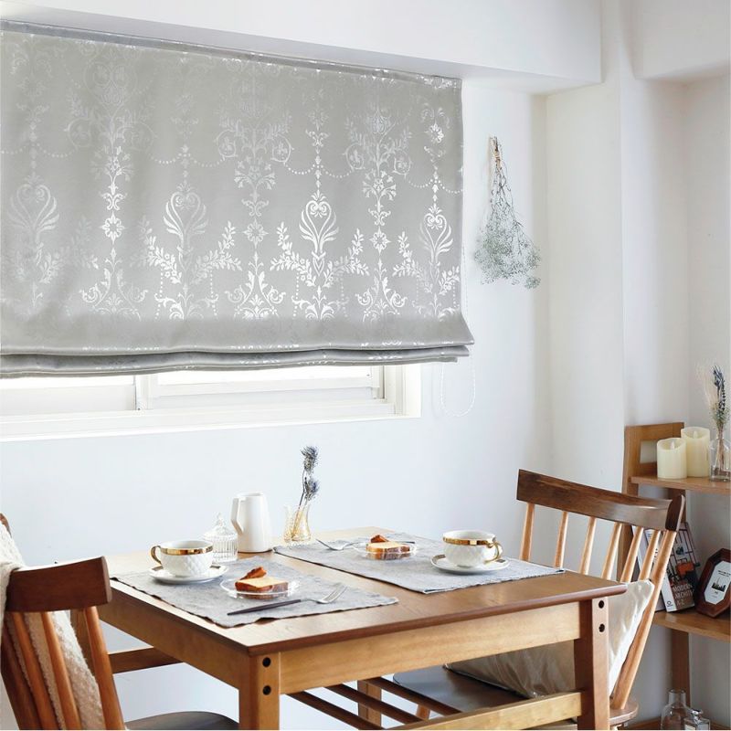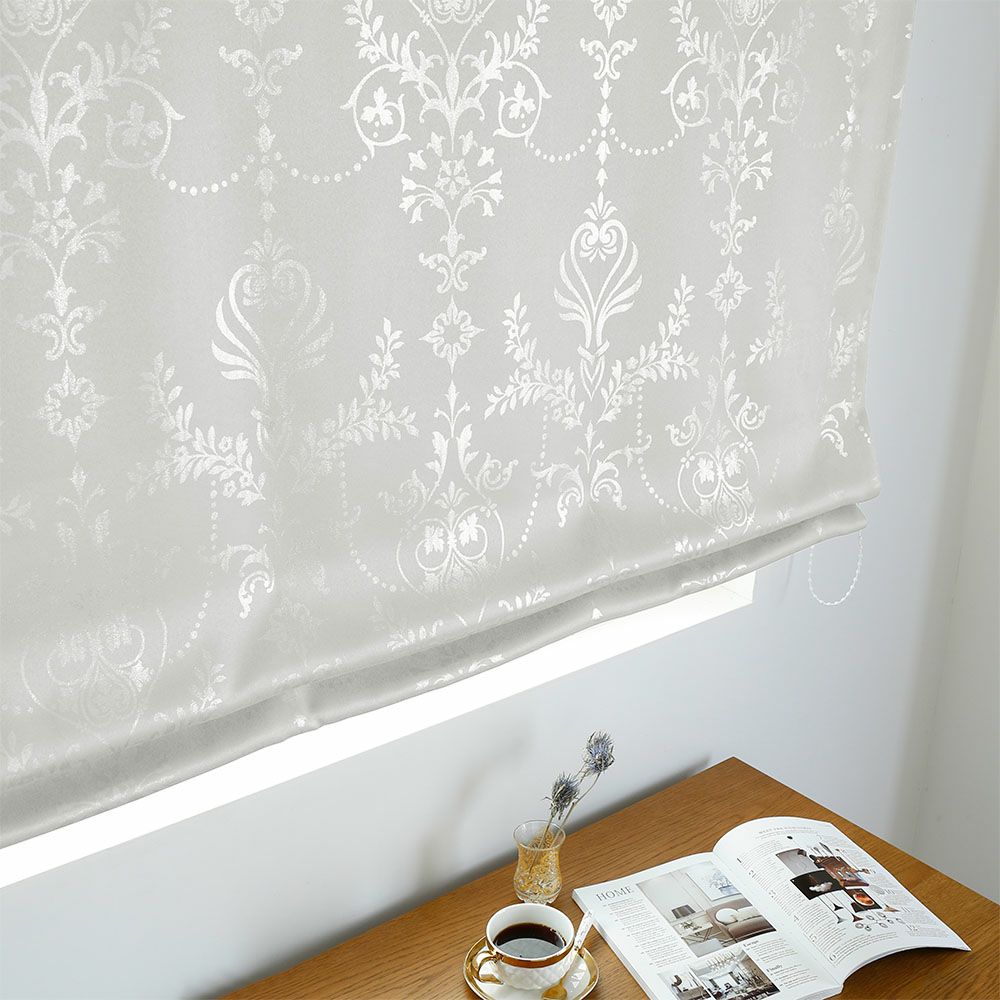 時代を超えて愛されてきたダマスク柄。そのクラシカルな美しさを残しつつ箔プリントで艶やかに仕上げ、思わず見惚れしまう上品でモダンなシェードカーテンに。光の当たる具合で見え隠れする箔プリントは、儚く美しい。 -
