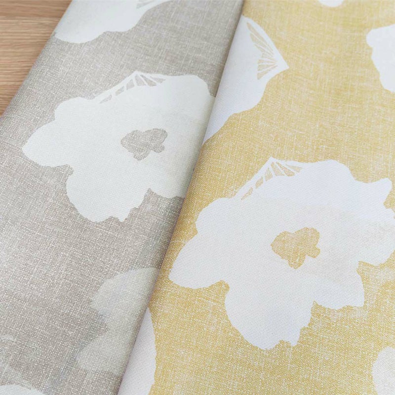 落ち着いたグレーと、気分をパッと明るくさせるイエローの2色をご用意いたしました。ちょっとムラのあるプリントは、北欧らしいプリントの手捺染風の味わい深さがあります。