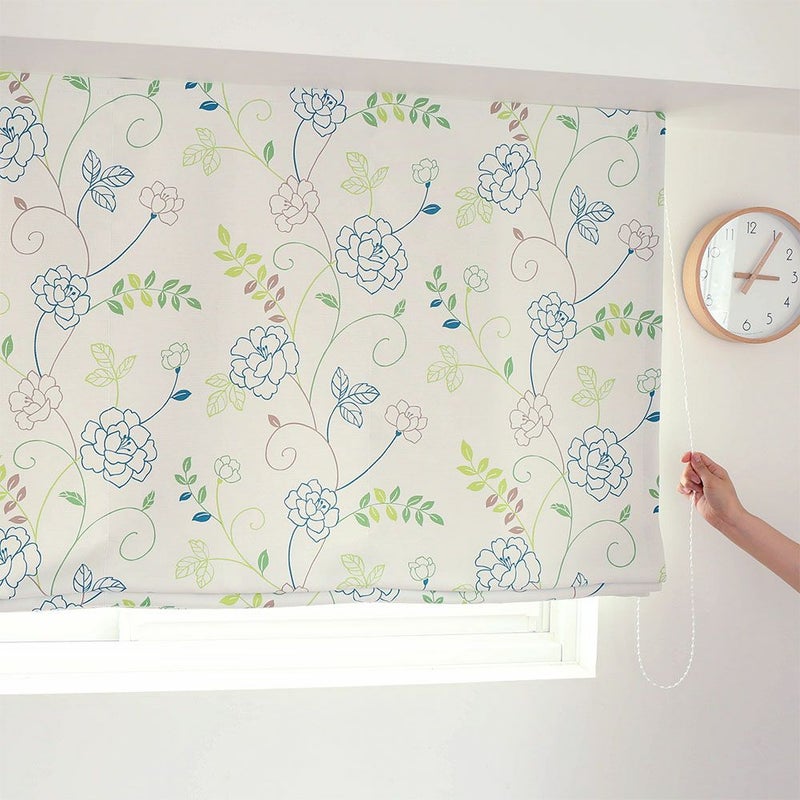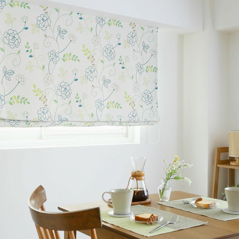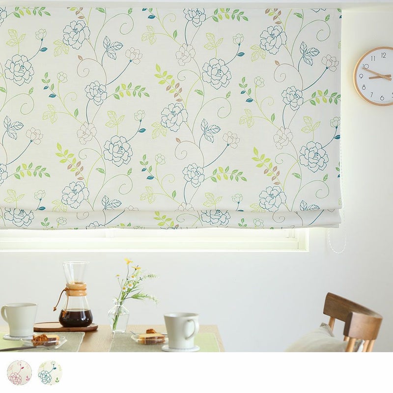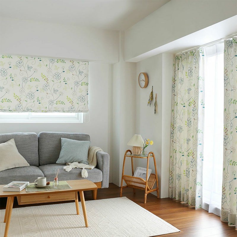 【撮影コーディネート】ドレープカーテン<ソフィー> グリーンリラックスムードが漂う、のびやかなお花柄の遮光シェードカーテンです。