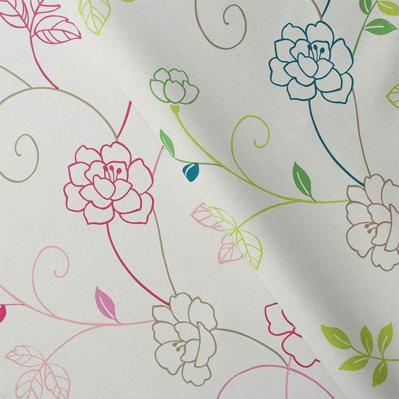 カラーはグリーンとピンク。ナチュラルなアイボリーをベースに同系色でまとめたお花柄は、お部屋に華やかさを添えながらすっとなじんでくれます。ポップなカラーの中にナチュラルカラーが絶妙に混じっているところも、インテリアに馴染みやすいポイント。
