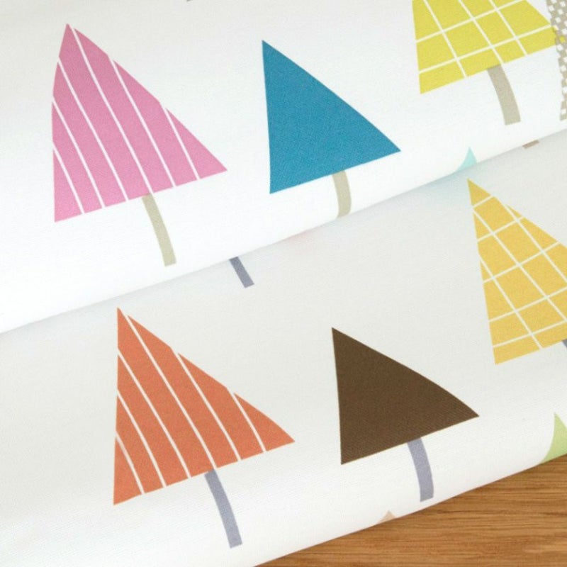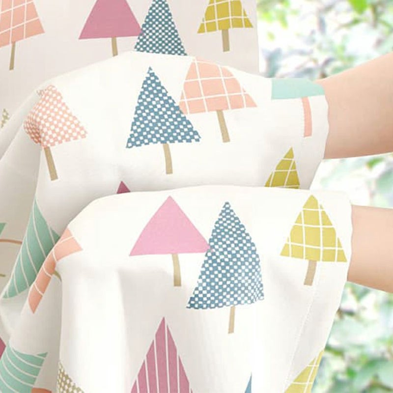 柔らかな生地感は北欧インテリアにピッタリ。優しいアイボリーカラーをベースに爽やかな印象のピンクと落ち着き感じるブラウンを基調にデザインされた三角モチーフの木々は、お部屋を北欧スタイルな印象にします。
