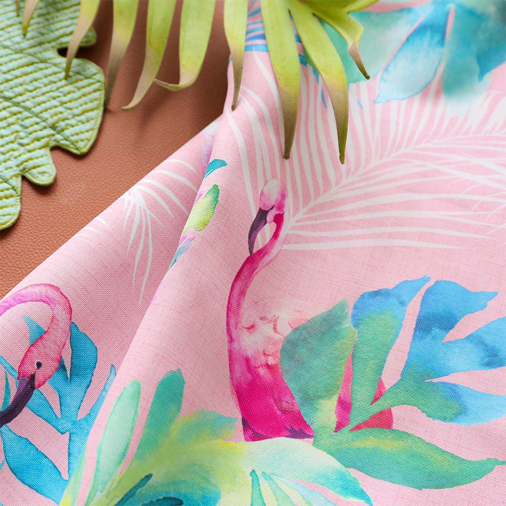 南国を想起させるトロピカルリーフ柄と愛おしいフラミンゴ。ハワイのカフェで描かれているようなフラミンゴデザインのカーテンが欲しい。探してもなかなか見つからないハワイアンカフェ風のデザイン。ならば作ろう!という想いからオリジナルで誕生した、フラミンゴモチーフ!みんなが大好きなハワイをおうちで再現してみませんか?